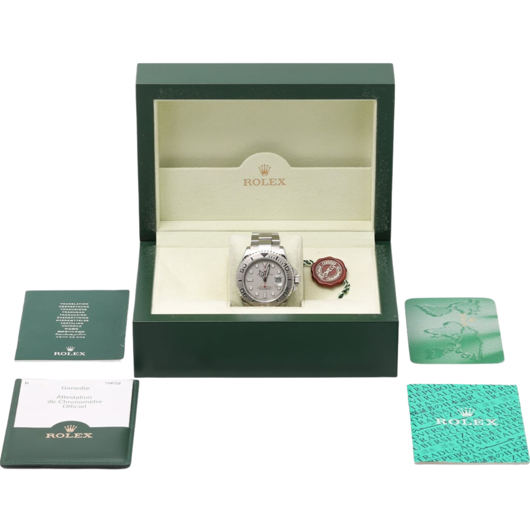 A Rolex Yacht-Master Watch, Stainless Steel with a Platinum Bezel on a Silver Dial
