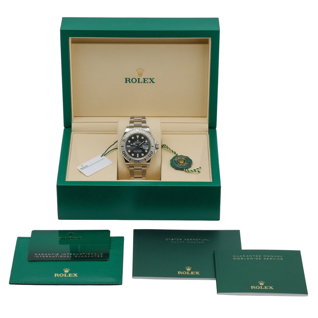 A Rolex Yacht-Master Watch, Stainless Steel with a Platinum Bezel on a Slate Dial