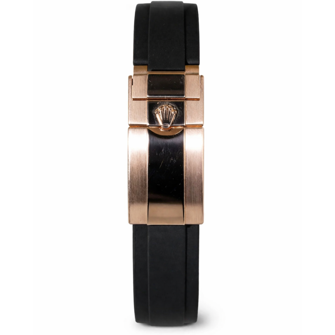 A Rolex Yacht-Master 40 Watch, Black Rubber Strap with 18ct Rose Gold Case & Clasp and a Custom Rainbow Bezel and Custom Diamond Dial.