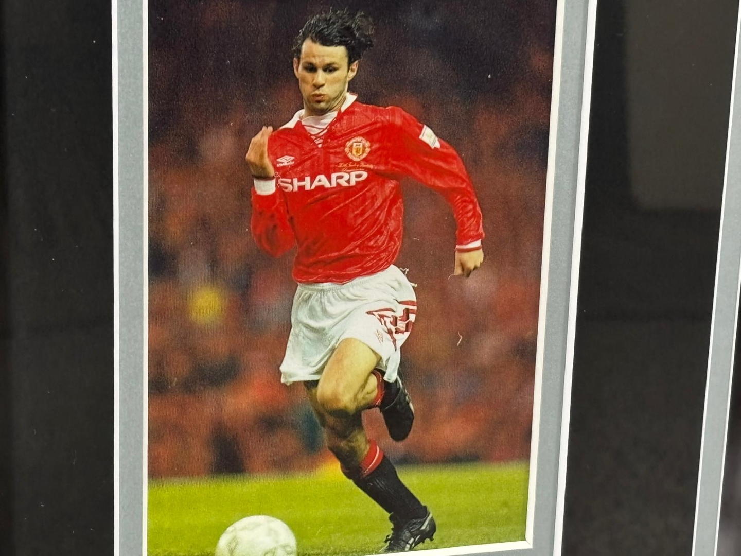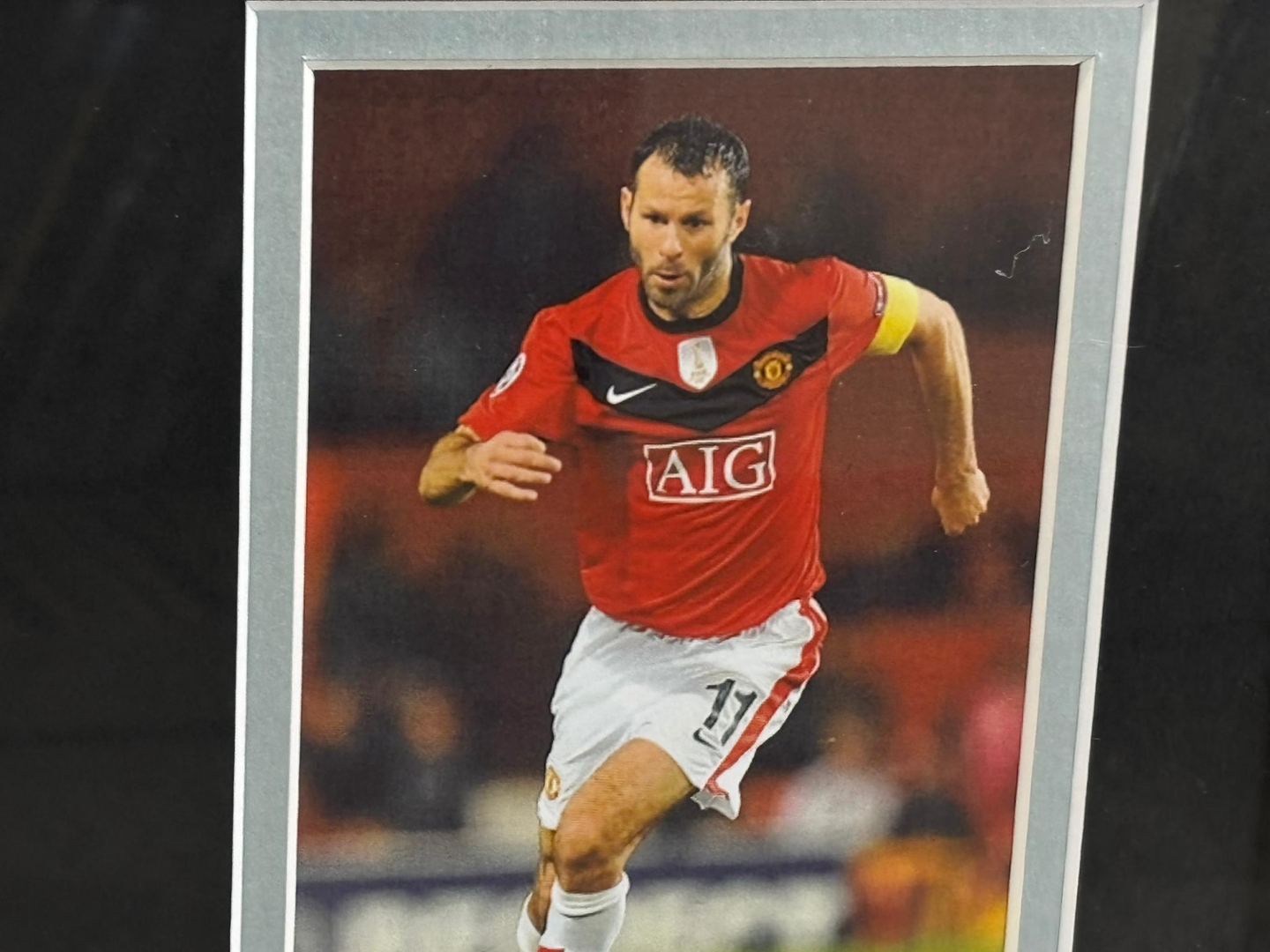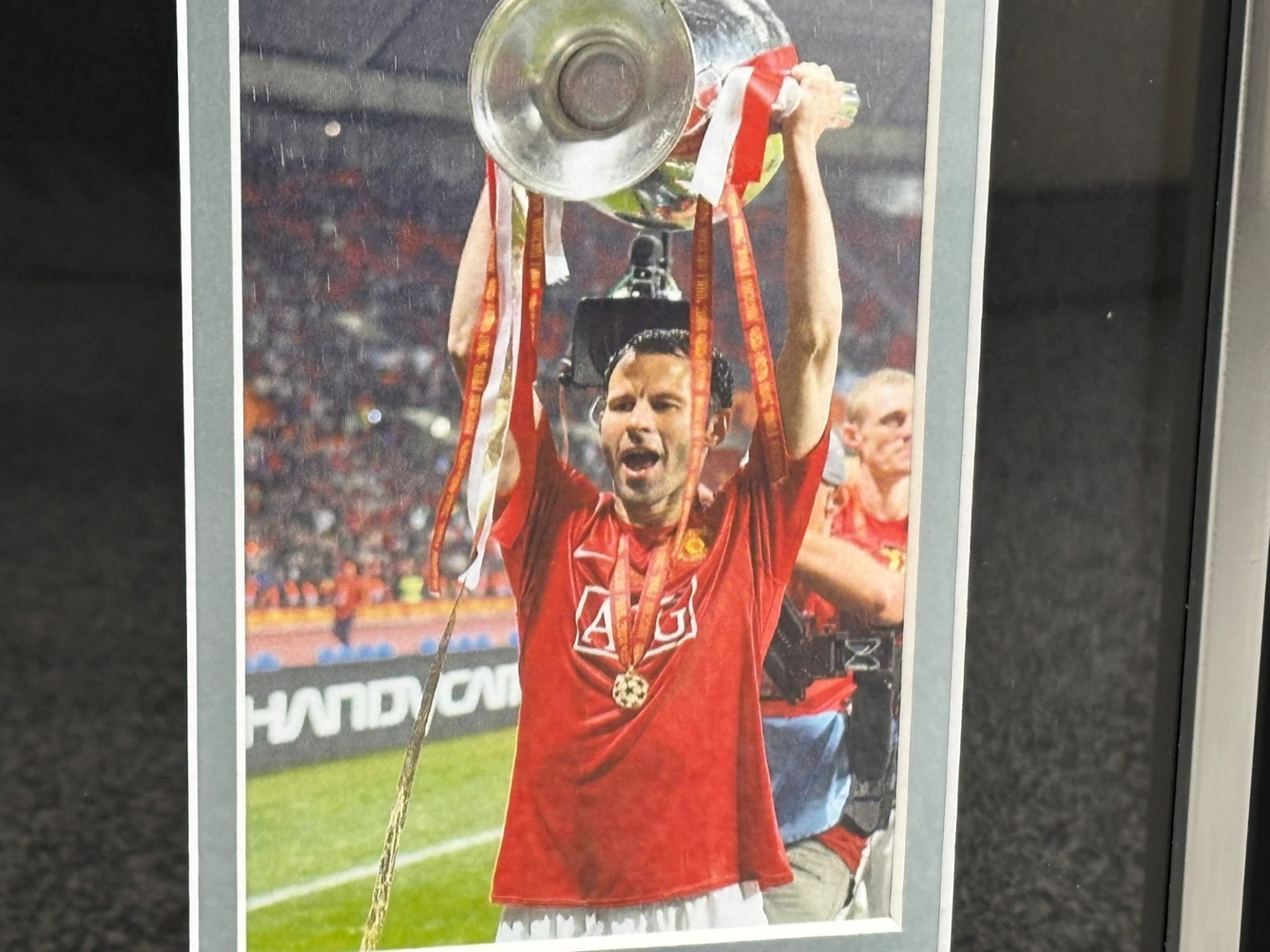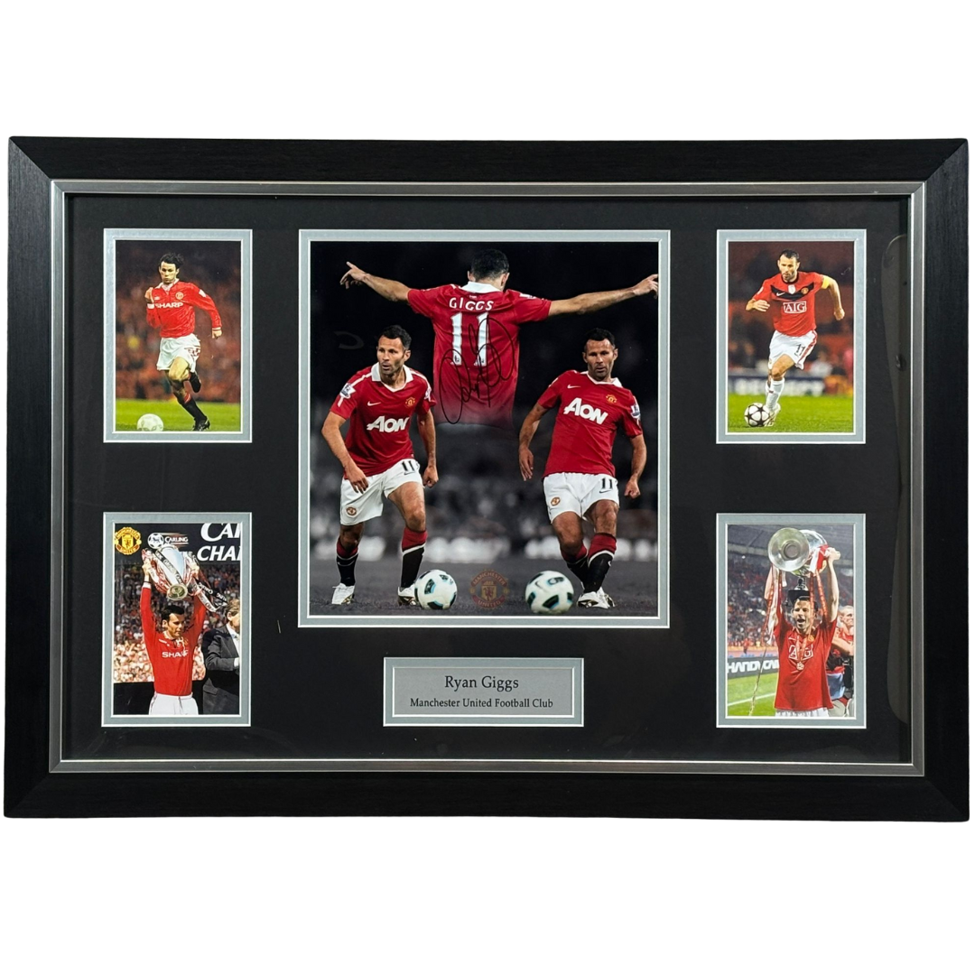 A signed and authenticated Ryan Giggs picture montage, exquisitely presented in a premium display frame. A tribute to the most decorated player in English football history, this piece captures Giggs' flair, longevity, and legendary presence in the red of United.