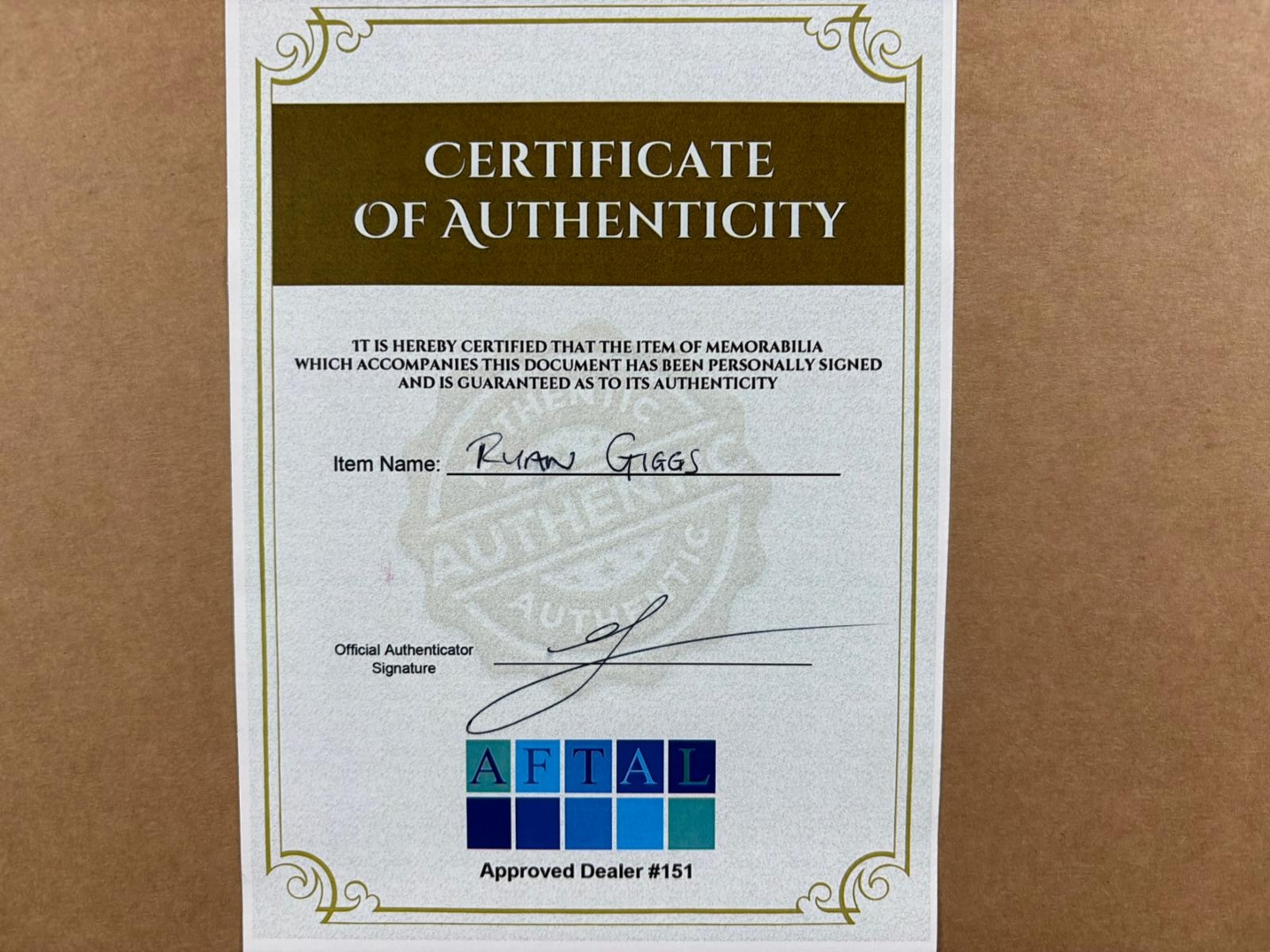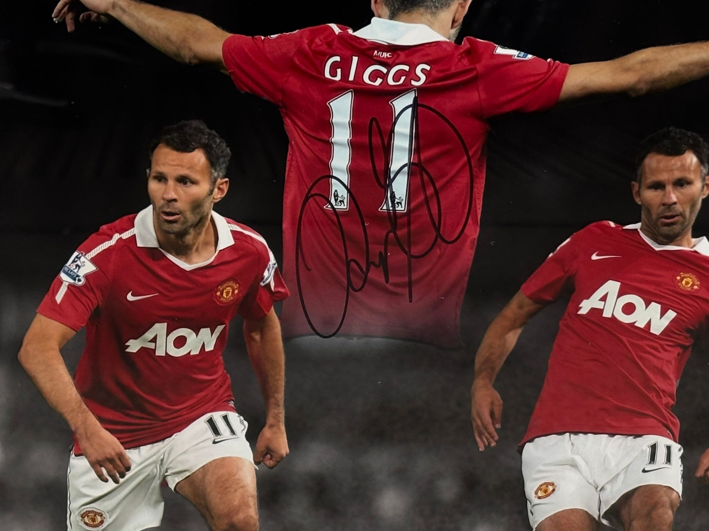 Measuring approximately 52cm in height and 73cm in width, the montage showcases a stunning array of imagery, featuring Giggs in full flight, lifting silverware, and orchestrating play in the iconic number 11 shirt. At the heart of the display is a striking image personally signed by Giggs himself, adding a touch of authenticity and exclusivity to this collector’s item.