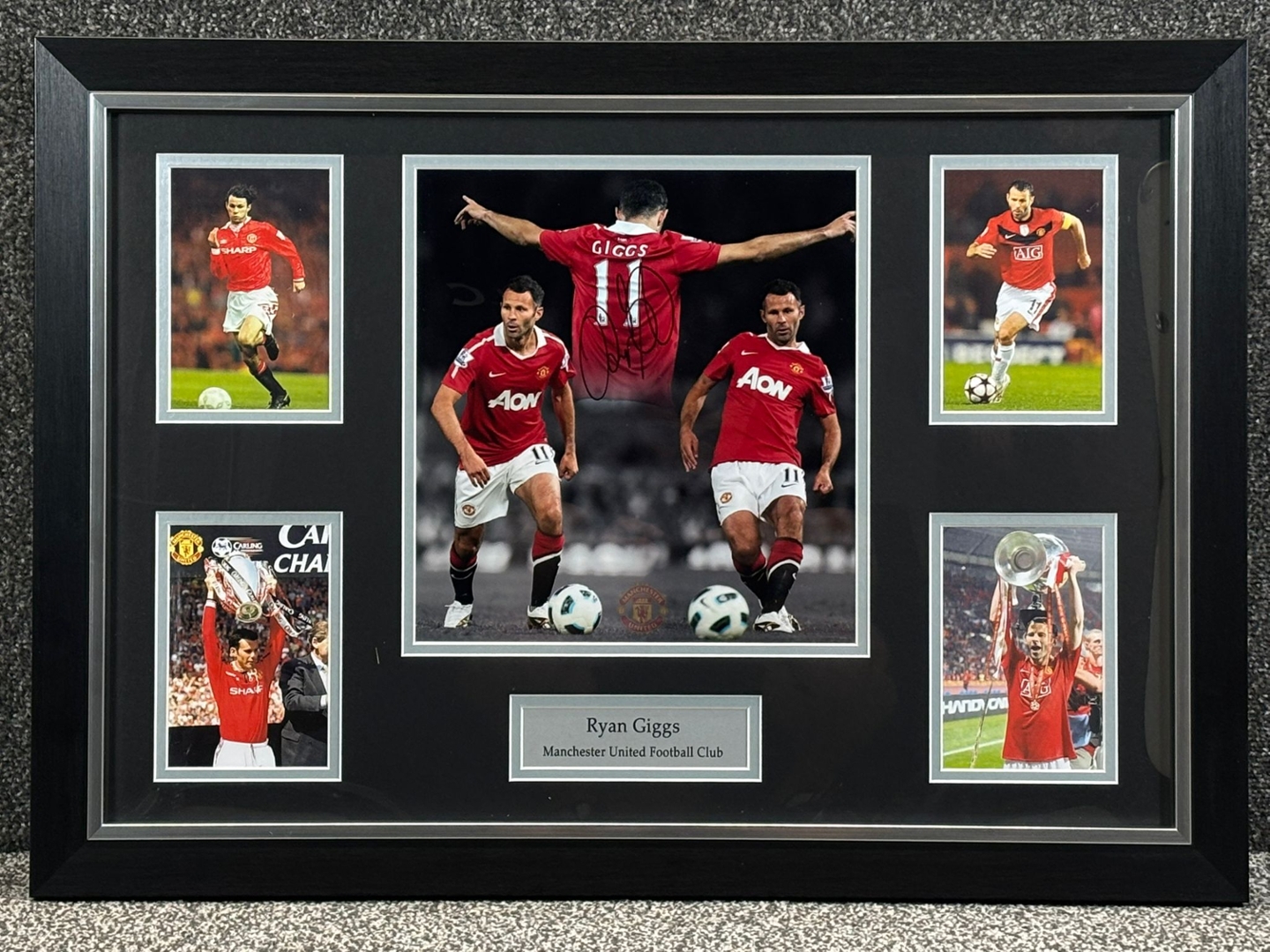 A signed and authenticated Ryan Giggs Man United Picture Montage in a presentation frame. Approx 52cm height, 73cm width.