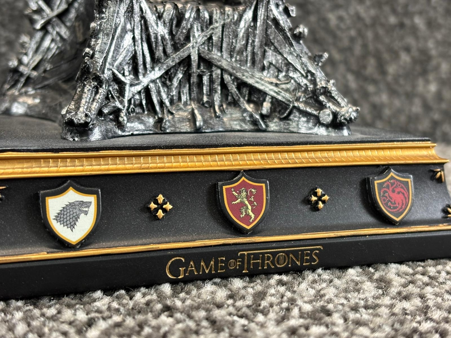 Whether displayed proudly on a desk or in a collection, this Iron Throne sculpture is a bold tribute to the epic saga that kept the world on edge. A must-have collectable for any true Game of Thrones enthusiast!