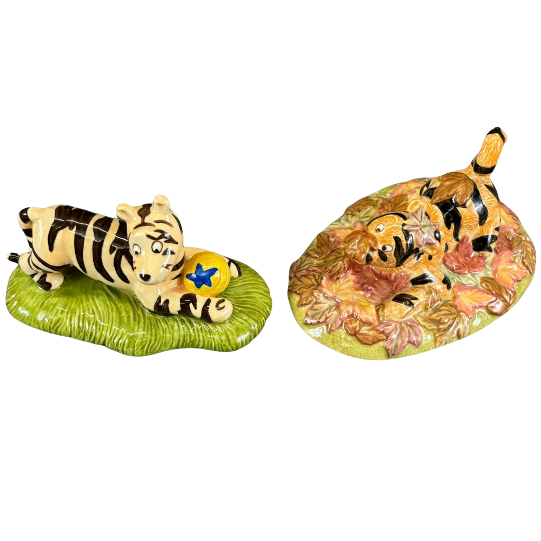 A Set of 2 Royal Doulton Porcelain Sculptures of Tigger from Winnie The Pooh. Approximately 8cm height, 12cm width, 9cm depth.