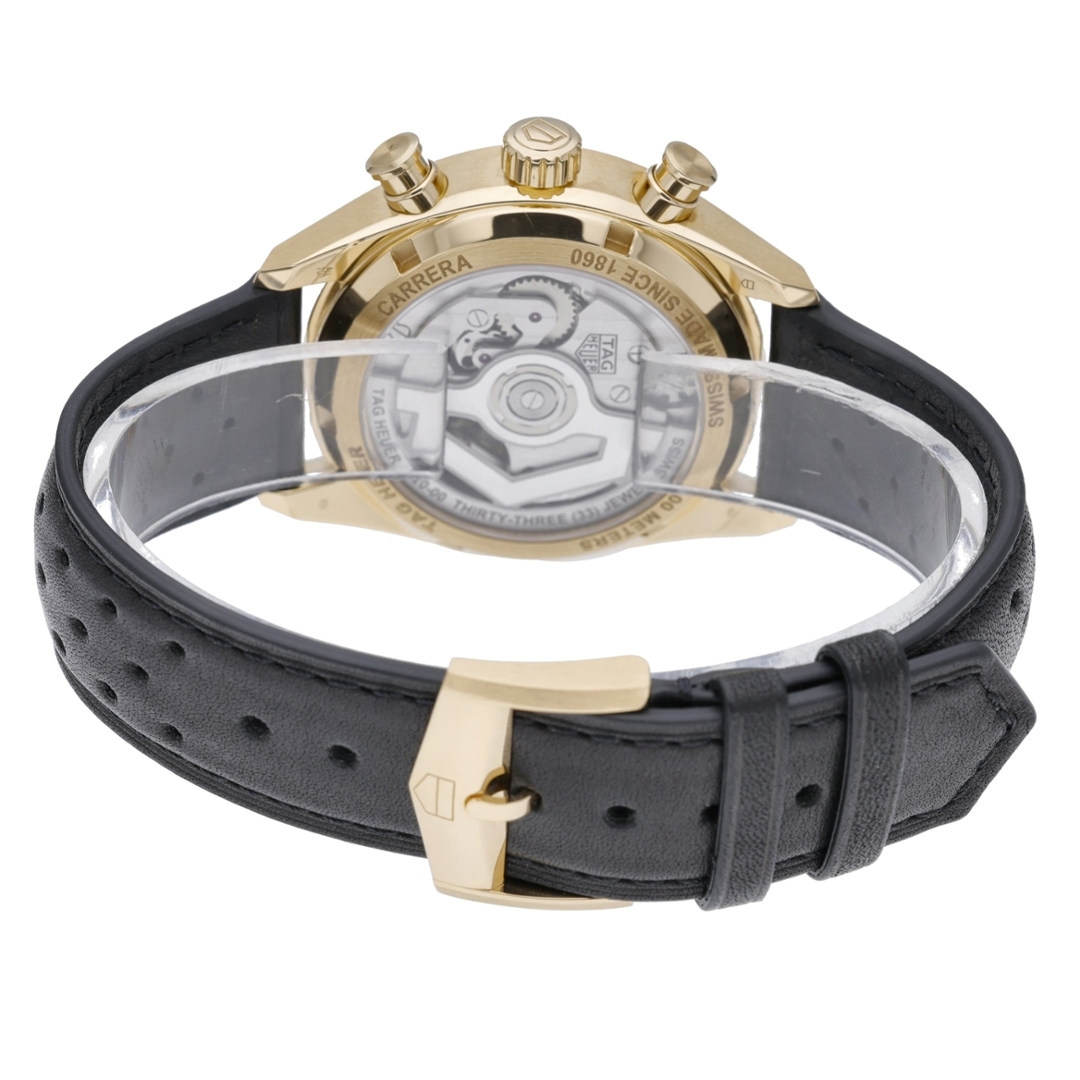 Powered by a high-performance automatic movement, the model offers the precision and reliability that have defined the Carrera line since its inception. Its solid 18ct gold crown and matching 18ct gold caseback elevate the watch beyond standard luxury, giving it an unmistakable sense of exclusivity. With a 13.9mm thickness, a lug-to-lug distance of 20.7mm and 100m water resistance, this piece is engineered for both everyday wear and special occasions.