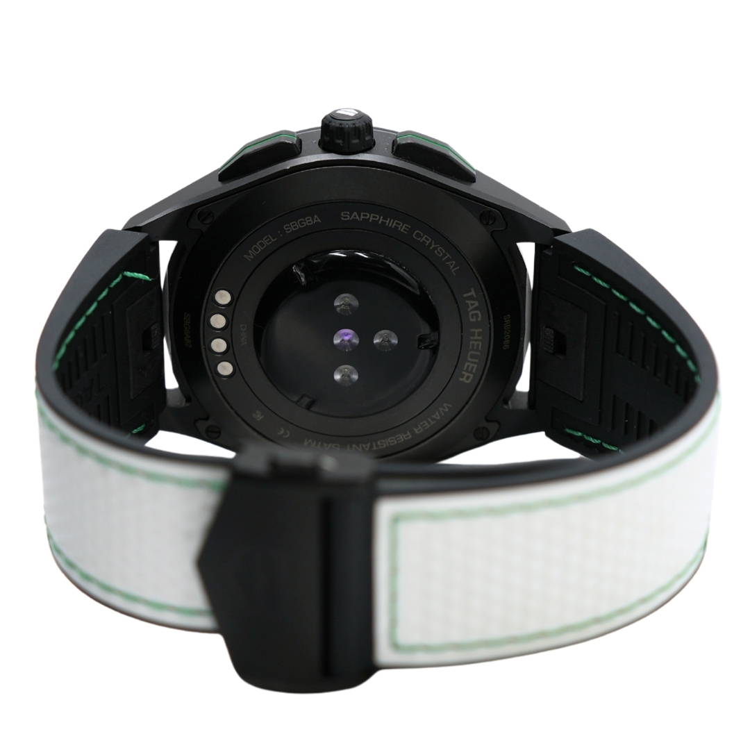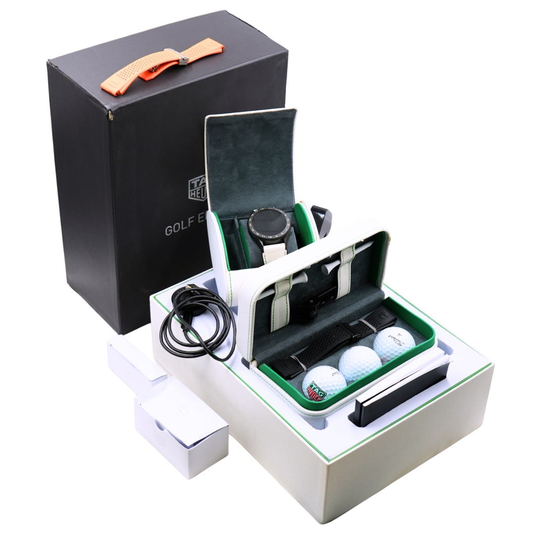 A Tag Heuer Connected Golf Edition Watch, White Rubber Strap with a Titanium Case & Clasp with a Black Bezel