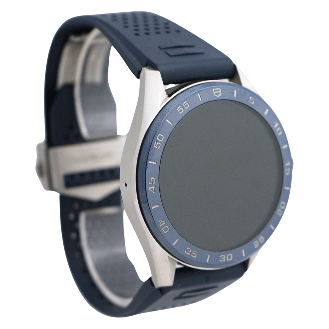 A Tag Heuer Connected Watch, Blue Rubber Strap with a Steel Case & Clasp on a Blue Ceramic Bezel.