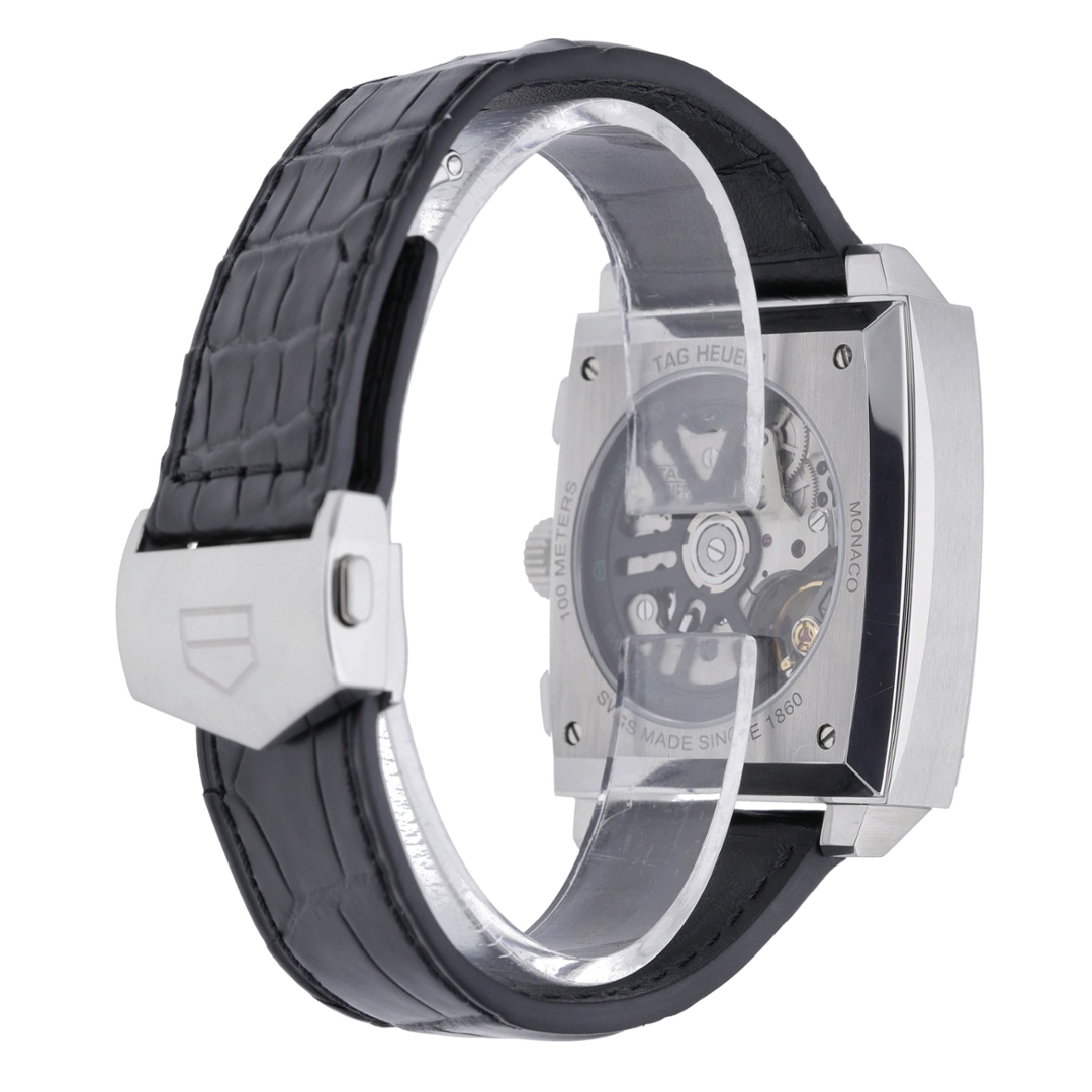 Powering the watch is the TAG Heuer Calibre 12 automatic chronograph movement, offering reliable performance alongside a date display positioned at 6 o’clock. The layout delivers clear legibility while preserving Monaco’s distinctive symmetry and racing-inspired character.