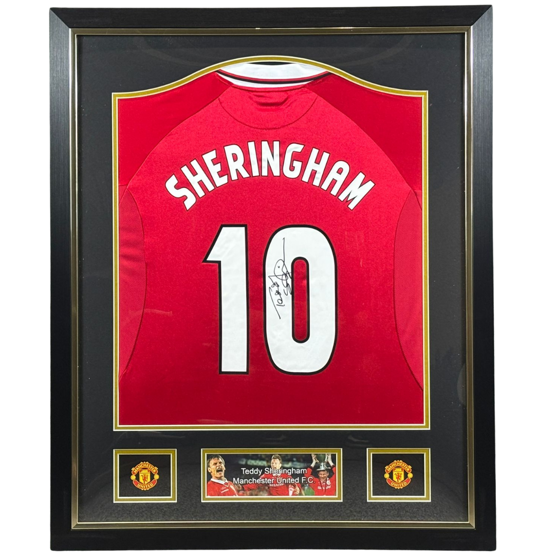 A signed Teddy Sheringham Manchester United football shirt is a remarkable piece of sporting memorabilia, celebrating one of the club’s most iconic strikers. Sheringham, famed for his intelligence, finishing ability, and unforgettable contribution to United’s historic 1999 treble-winning season, remains a legend in English football. His signature is prominently displayed on the shirt, making it a genuine collector’s item for devoted fans and memorabilia enthusiasts alike.