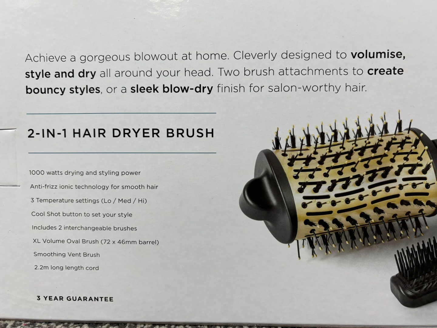 Featuring a high-performance 1000W motor, this dryer brush delivers consistent airflow to speed up drying time while enhancing lift at the roots. The XL oval brush design creates body and movement, while the bristles work to detangle and smooth as you style. Anti-frizz ionic technology helps reduce static and flyaways, leaving hair looking sleek, shiny, and professionally finished.