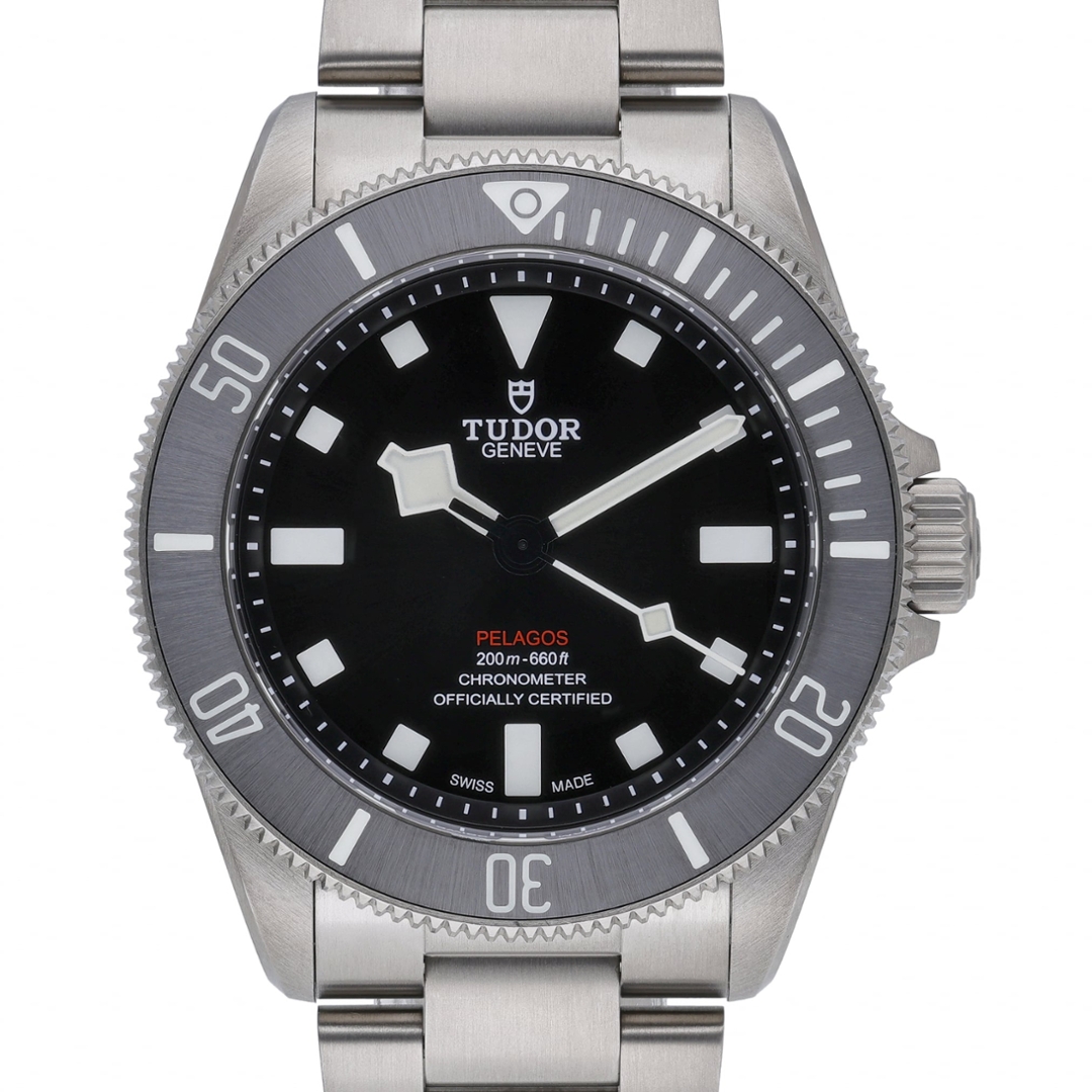 A Tudor Pelagos watch crafted entirely from lightweight titanium, featuring a sleek black ceramic bezel and matching black dial. Model number 25407N, this 2022 example represents the latest evolution of Tudor’s renowned dive watch line, powered by the COSC-certified Calibre MT5400 automatic movement. Delivering a 70-hour power reserve and outstanding accuracy, it upholds the Pelagos legacy of professional-grade reliability and durability. The 39mm case offers a perfectly balanced size, combining robust performance with exceptional comfort for everyday wear.