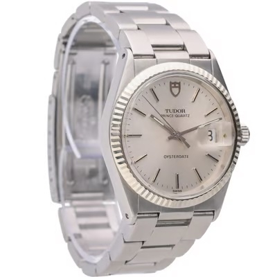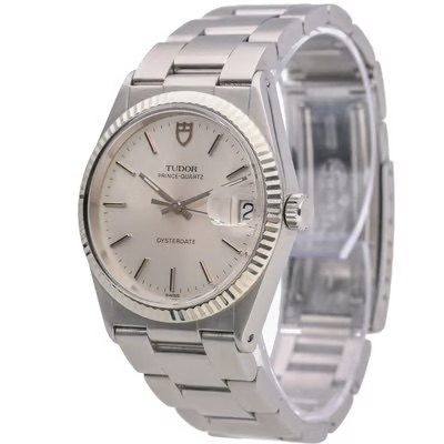 A Tudor Prince Oysterdate, a vintage masterpiece 1984 that exemplifies the brand’s dedication to quality and style. Crafted from robust stainless steel, this watch features a 34mm case, making it the epitome of refined elegance. The silver dial, accented by sleek hour markers and hands, offers a clean and classic aesthetic, perfect for any occasion. Its understated beauty pays homage to Tudor’s legacy of creating iconic designs that withstand the test of time.