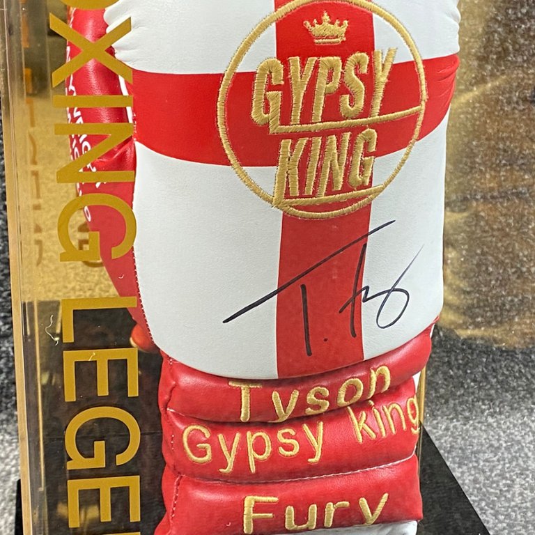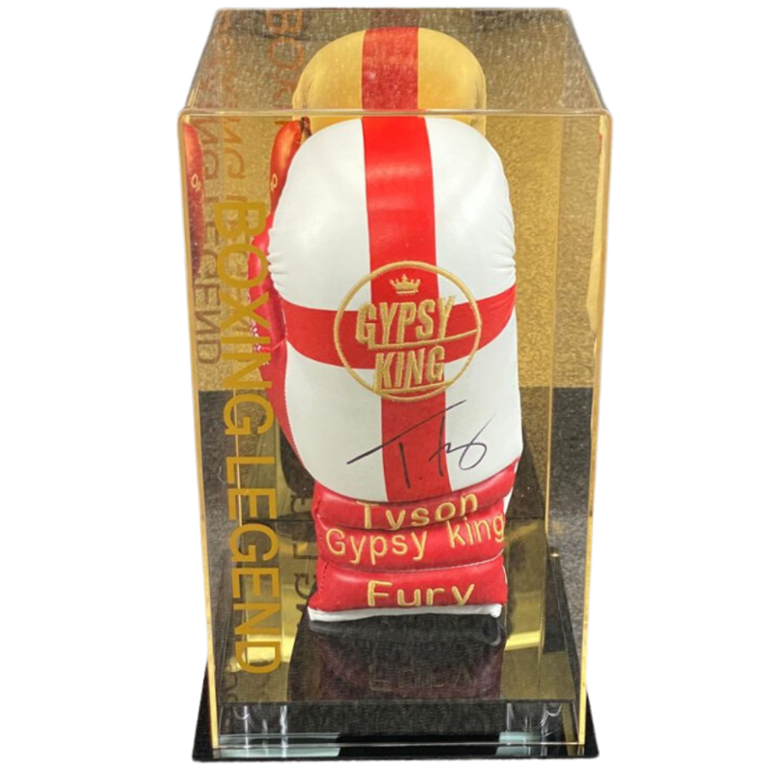 Whether displayed as a standalone item or as part of a larger collection, the signed and authenticated Tyson Fury St George Cross Boxing Glove serves as a powerful symbol of Fury's prowess in the ring and his pride in representing England on the global stage.