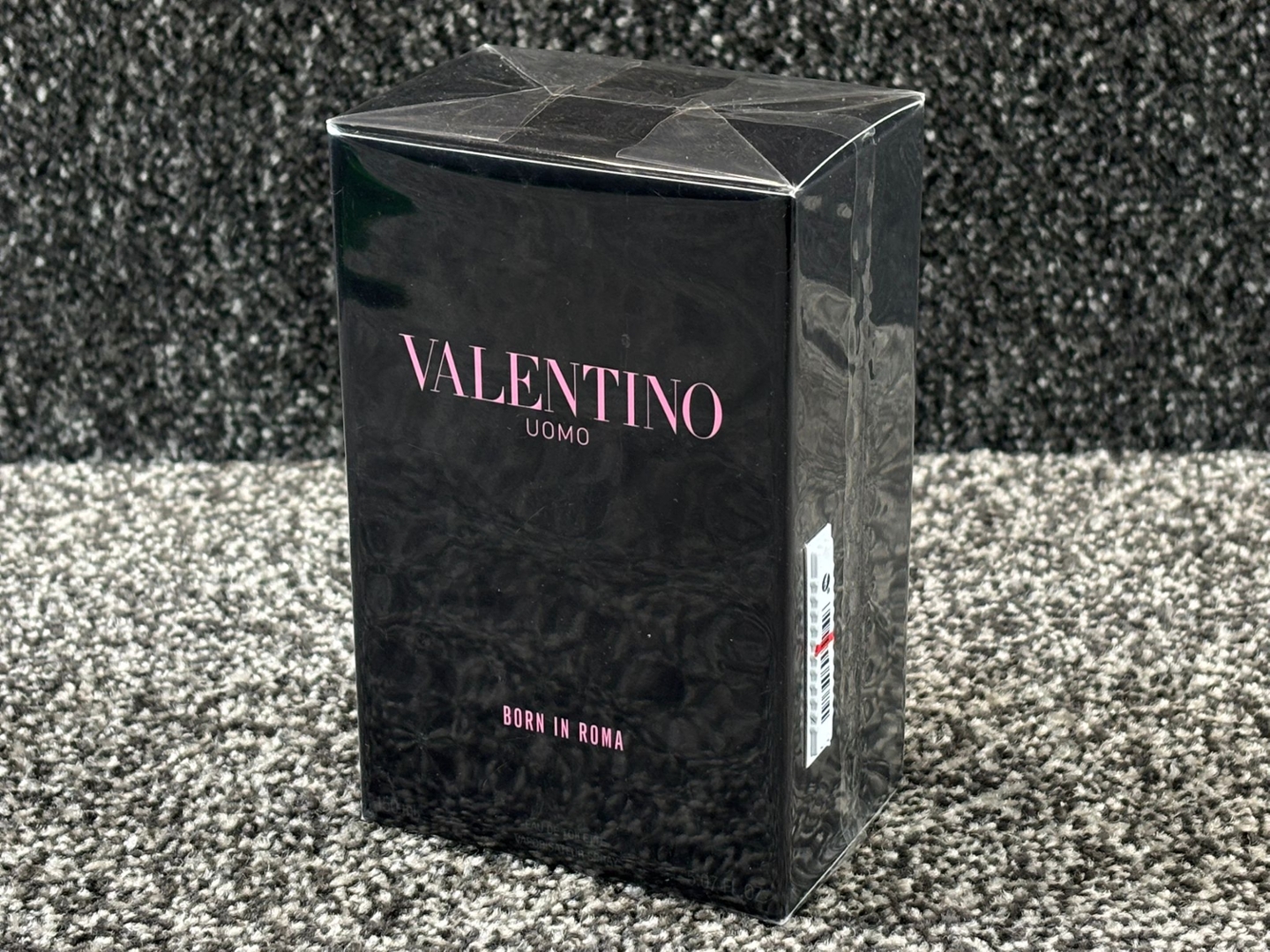 A 150ml bottle of Valentino Uomo Born In Roma Eau De Toilette, presented in its original presentation box and representing a bold, contemporary fragrance inspired by modern Roman style. This popular release combines classic elegance with a confident, urban edge, reflecting Valentino’s modern approach to masculine design.