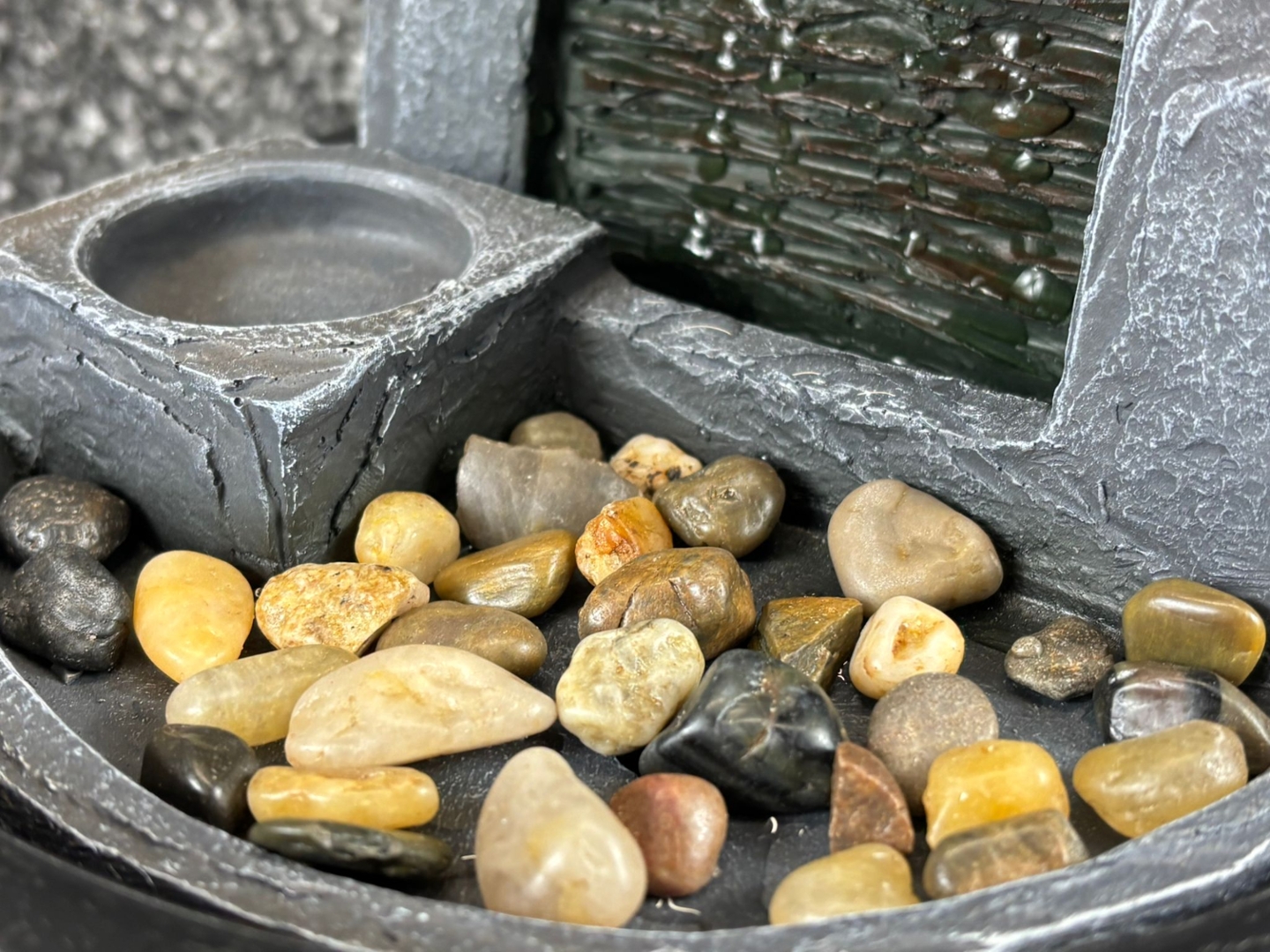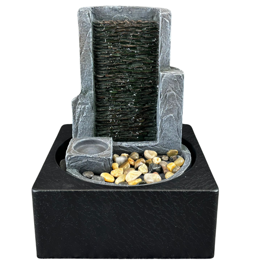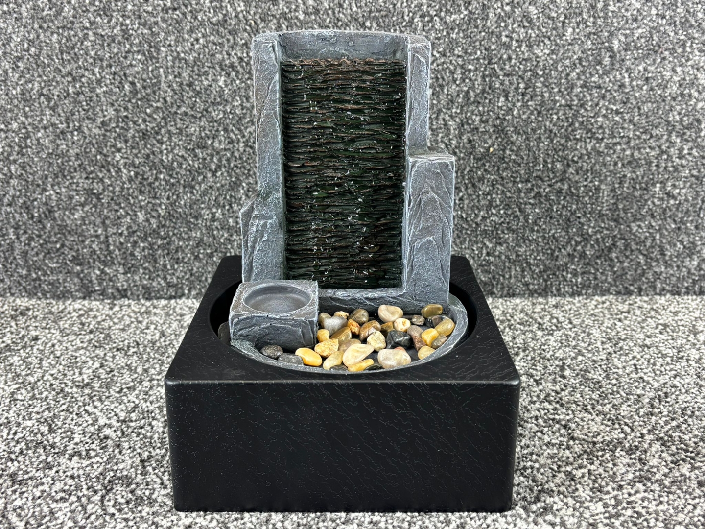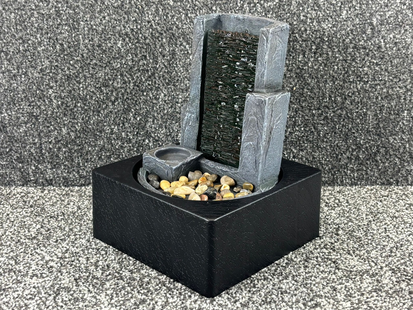 A Vertical Stream Water Fountain. Suitable for indoor and outdoor use. Approx 24cm height, 18cm width, 18cm depth.