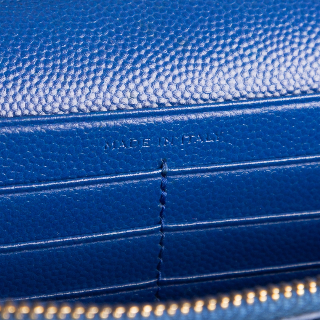 A vintage YSL blue calf leather Chain Wallet that perfectly embodies the brand’s timeless elegance and modern sophistication. Crafted from smooth calf leather in a rich blue tone, this exquisite piece features YSL’s signature chevron quilting, highlighted by the striking gold-tone metal Cassandre logo on the front flap. The bold contrast between the deep blue leather and gleaming hardware creates an effortlessly glamorous look, characteristic of Saint Laurent’s refined Parisian style.