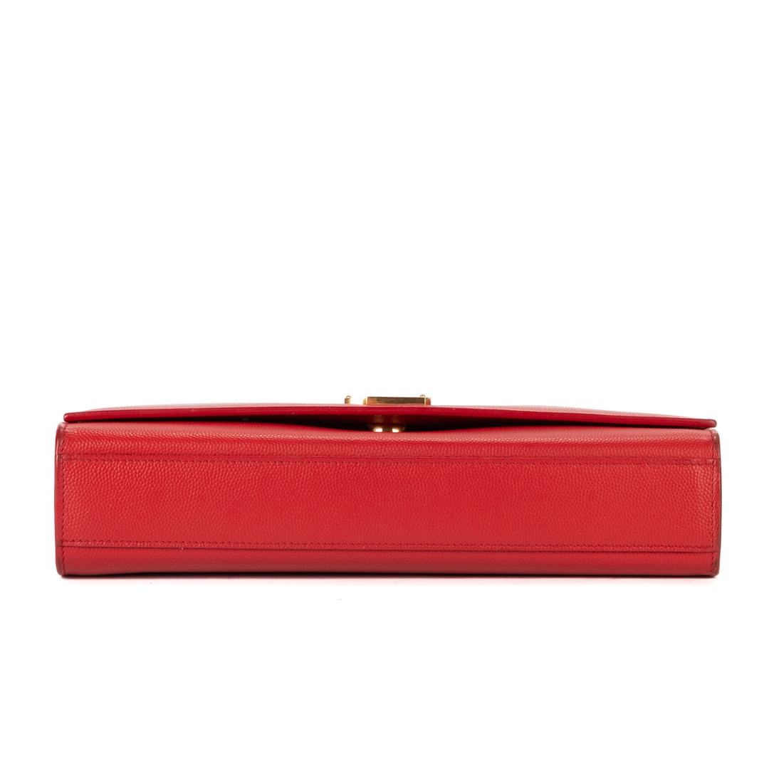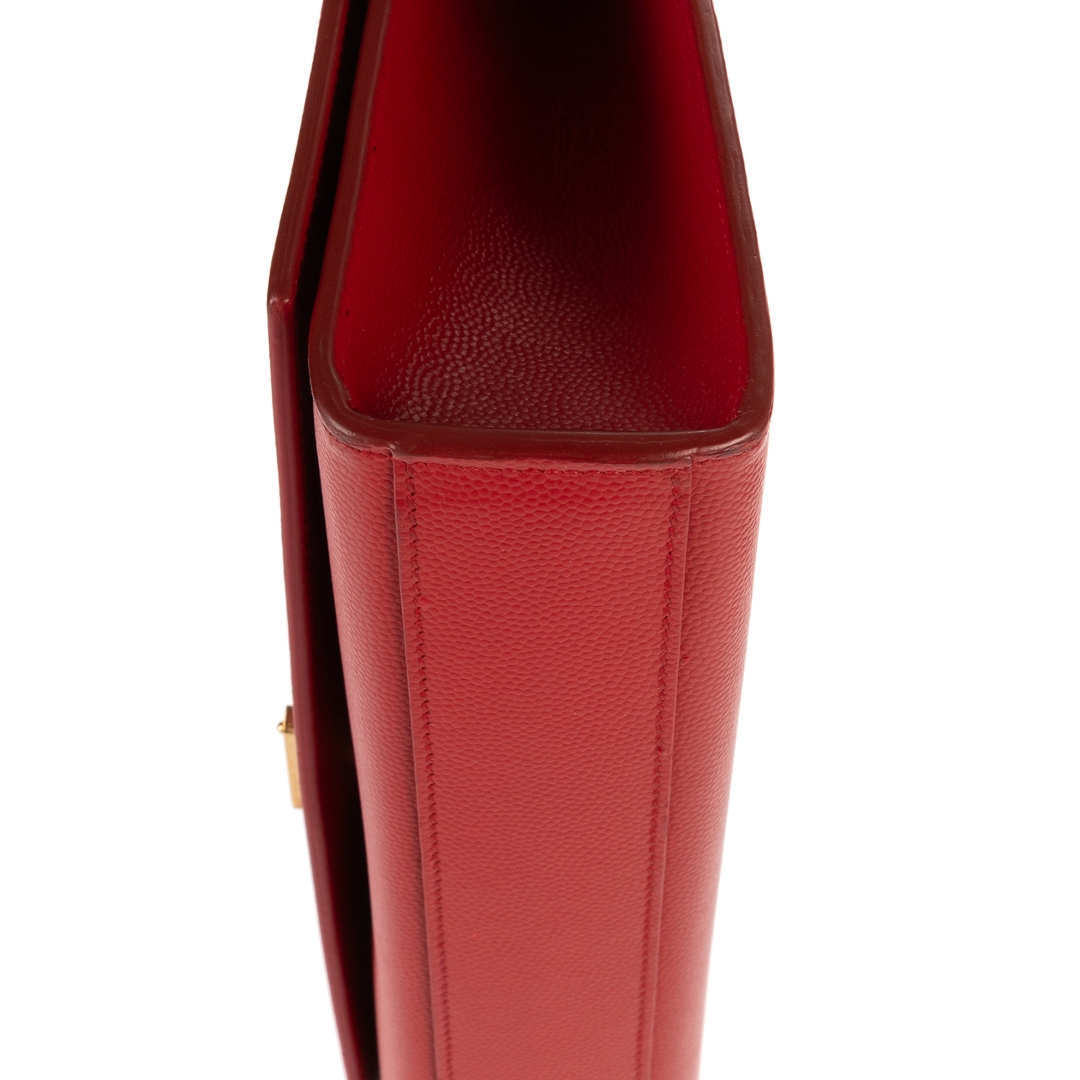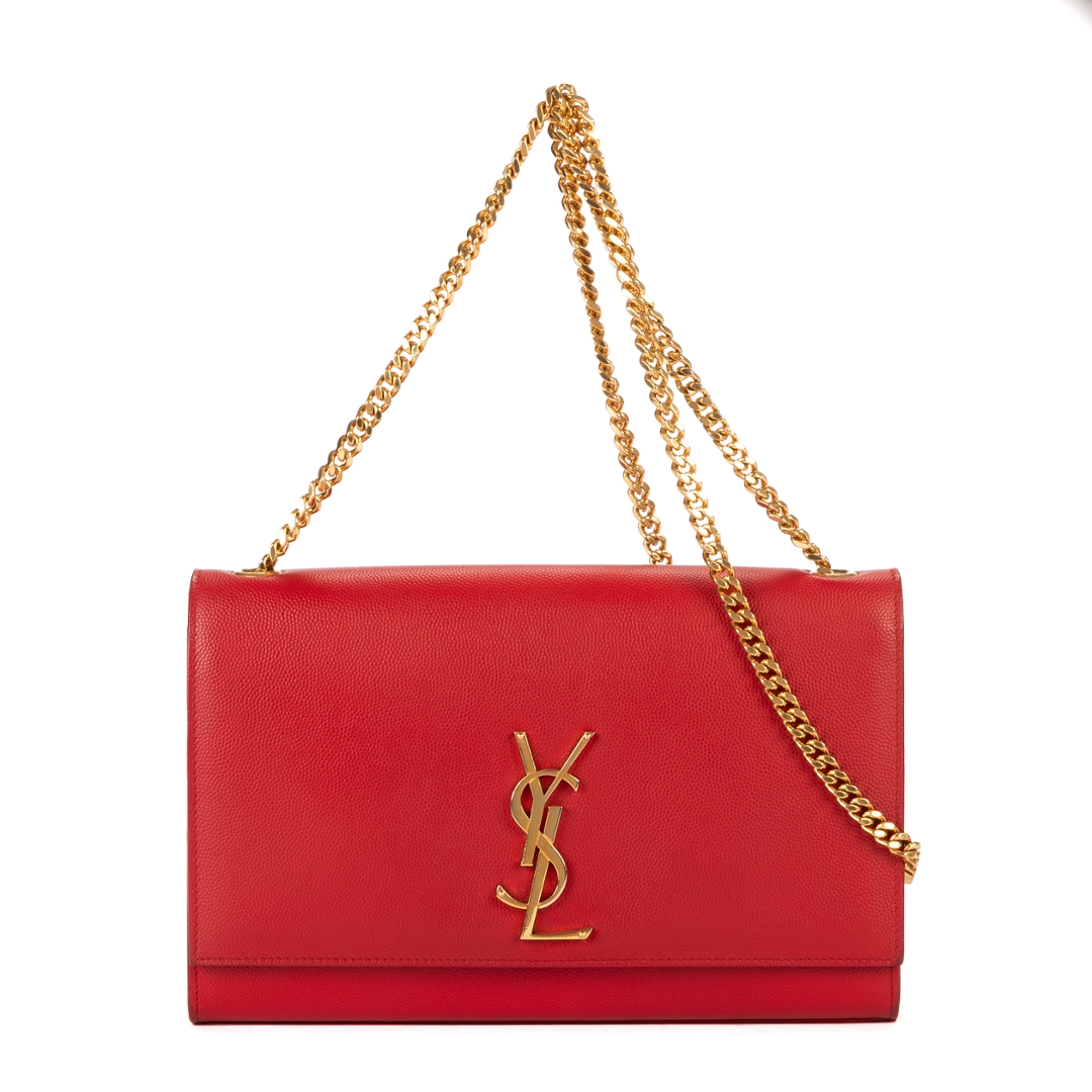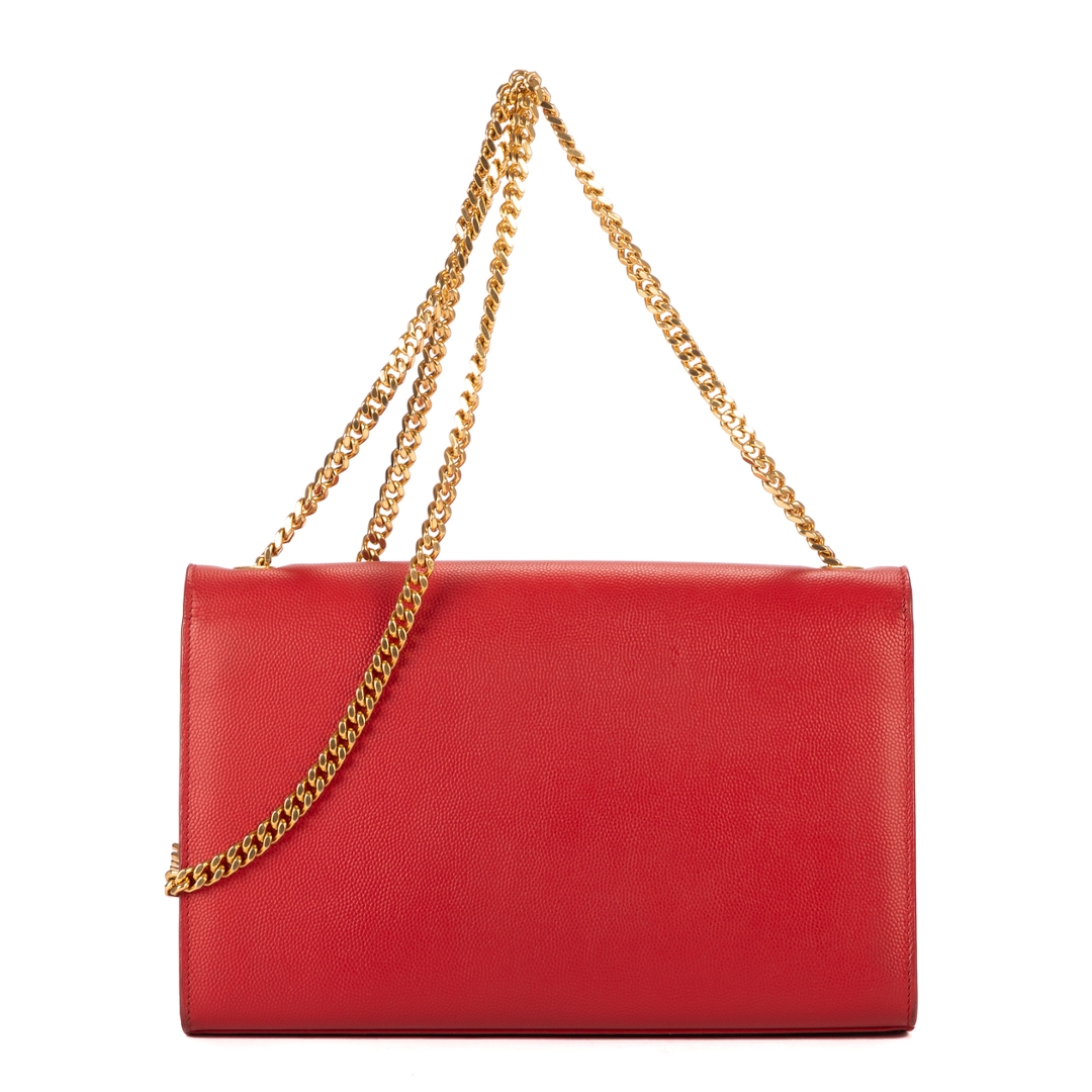 A vintage YSL red calf leather Kate bag that perfectly captures the allure and sophistication of the Saint Laurent legacy. Crafted from smooth, luxurious calf leather, this elegant piece showcases a structured silhouette adorned with the signature gold-tone YSL monogram on the front flap — a timeless emblem of Parisian glamour. The vibrant red hue exudes confidence and femininity, making it an eye-catching addition to any collection.