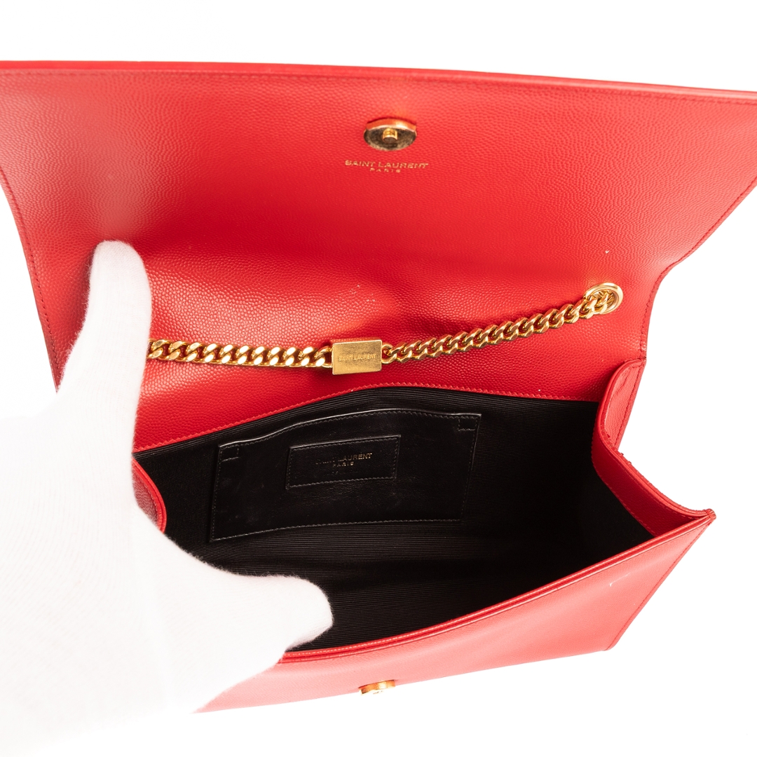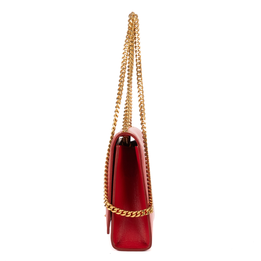 Measuring approximately 15cm in height and 24cm in width, the Kate bag offers refined practicality with a sleek, minimalist profile. The interior features a well-organised compartment ideal for carrying essentials, while the gleaming gold chain strap adds versatility, allowing it to be worn over the shoulder or elegantly in hand. Every detail reflects the impeccable craftsmanship and modern elegance synonymous with Saint Laurent.