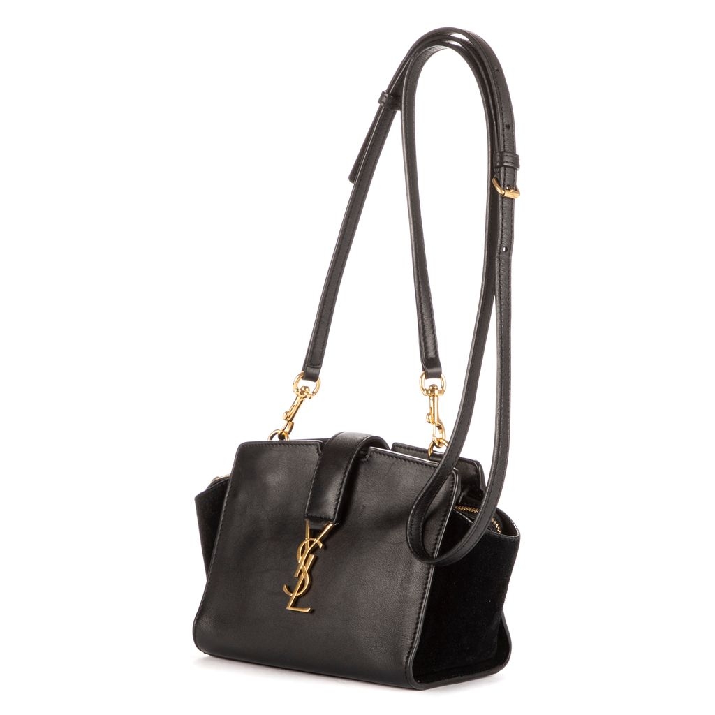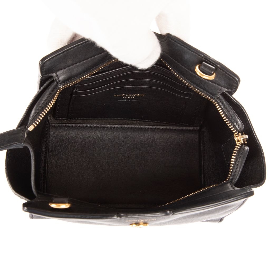 A vintage YSL black calf leather Toy Cabas bag with a certificate of authenticity, Approximately 12cm height, 21cm width.
