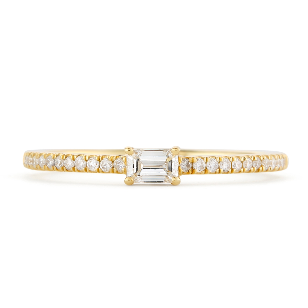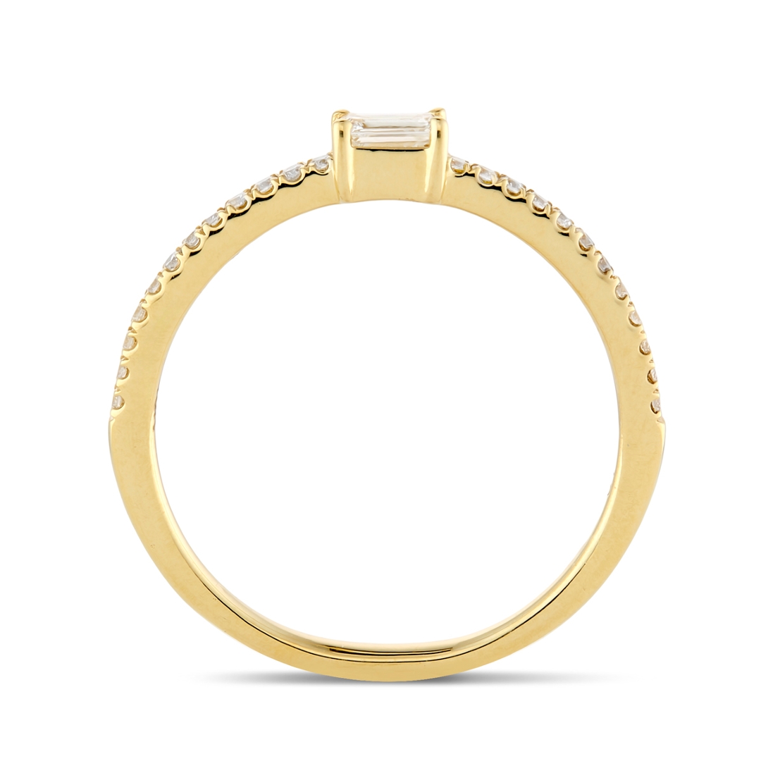 Natural diamonds are prized for their rarity and unique beauty, each one formed deep within the Earth over millions of years. The central emerald-cut diamond draws the eye with its understated elegance, while the brilliant-cut cluster maximises sparkle, ensuring this ring dazzles from every angle. The warmth of 18ct yellow gold enhances the natural fire of the diamonds, giving the piece a luxurious and enduring finish. Total weight 2.07 grams.