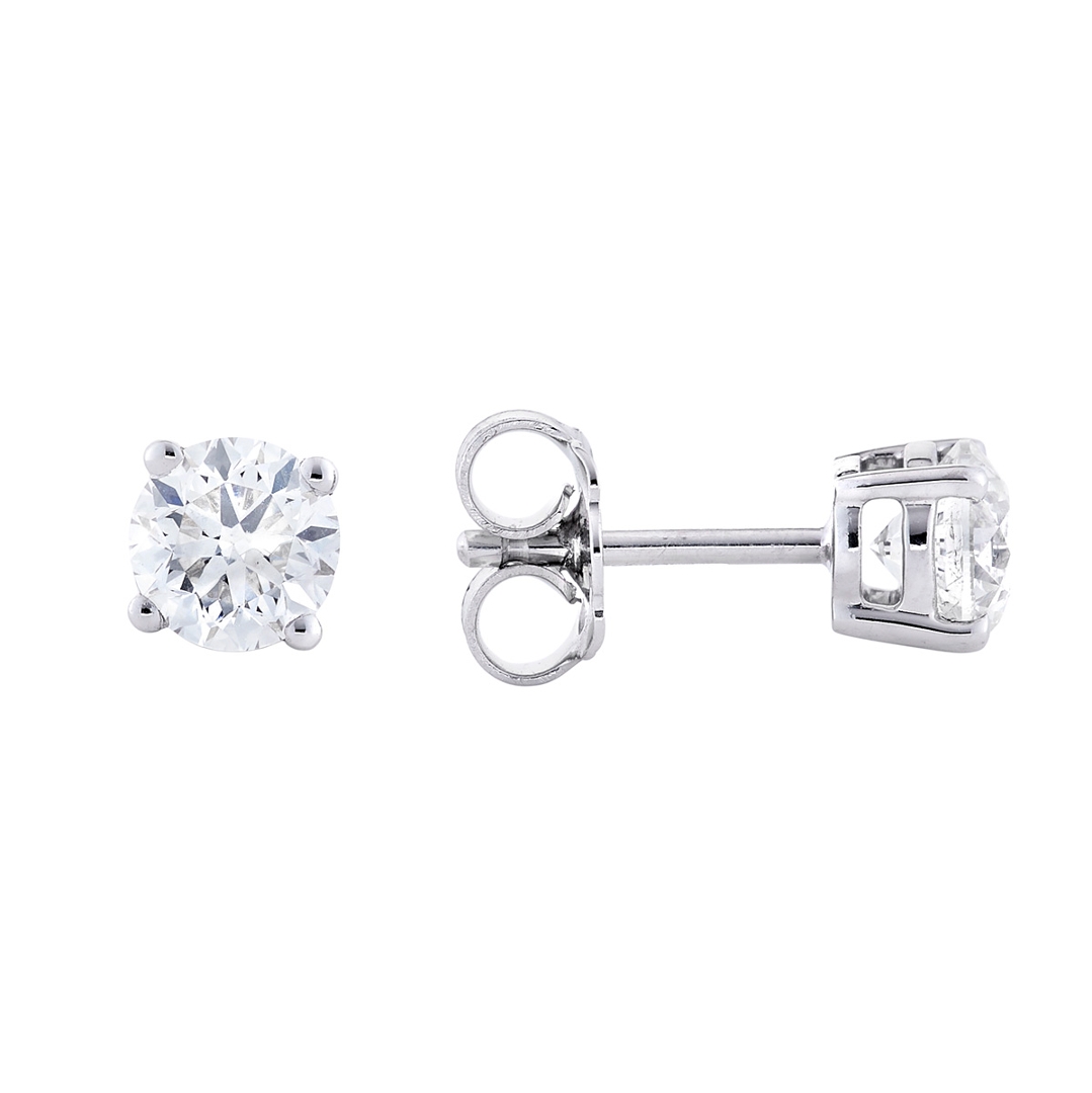 A brand new, unused, certified pair of natural diamond solitaire earrings, set with two brilliant-cut diamonds, set in 18ct white gold.
