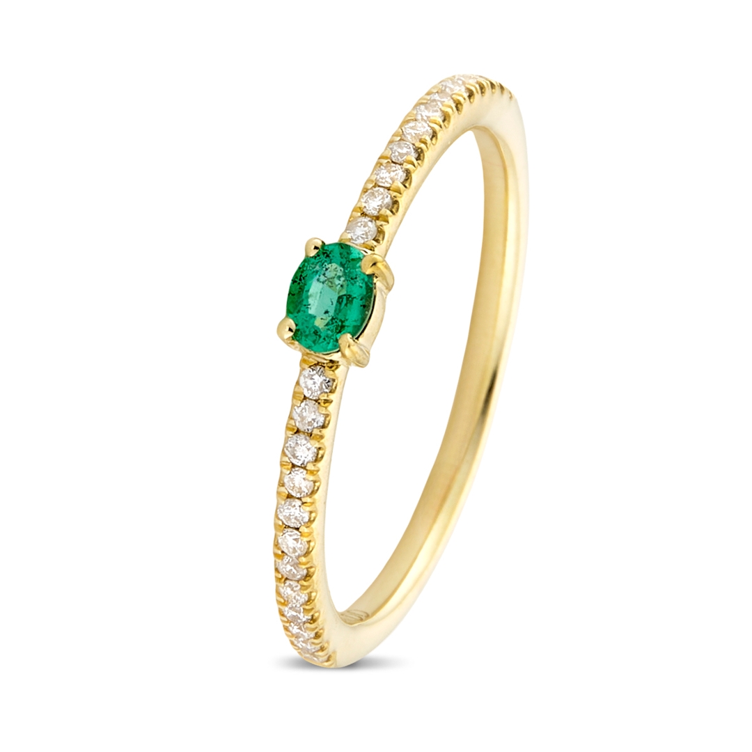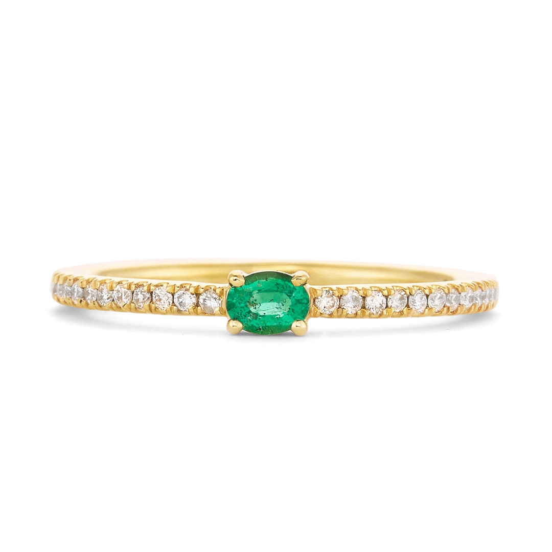 Emeralds are among the most revered gemstones in fine jewellery, admired for their rarity and the depth of colour that symbolises renewal and prosperity. When paired with diamonds, they create an enchanting contrast between rich colour and radiant brilliance. This elegant ring, with its slender 18ct yellow gold band, offers both subtle sophistication and enduring charm, making it a versatile piece suitable for everyday wear or special occasions.