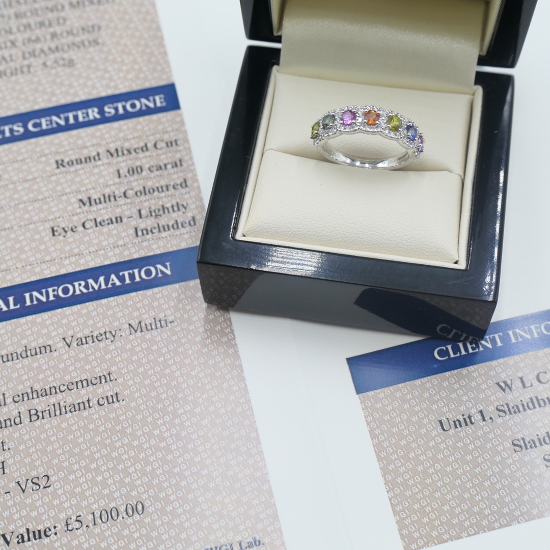 - > Natural Multi Sapphire 1.00ct & Diamond 0.36ct Ring