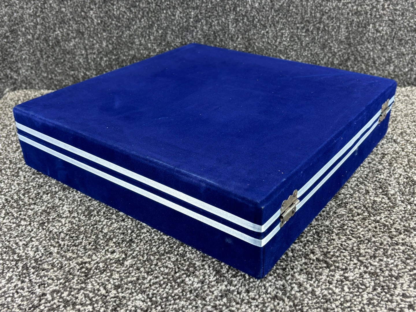 Accompanied by a deep blue velvet storage case, the set remains protected and easy to transport. The fitted design and secure clasps ensure each piece stays in place, making this an excellent gift or collectable item.