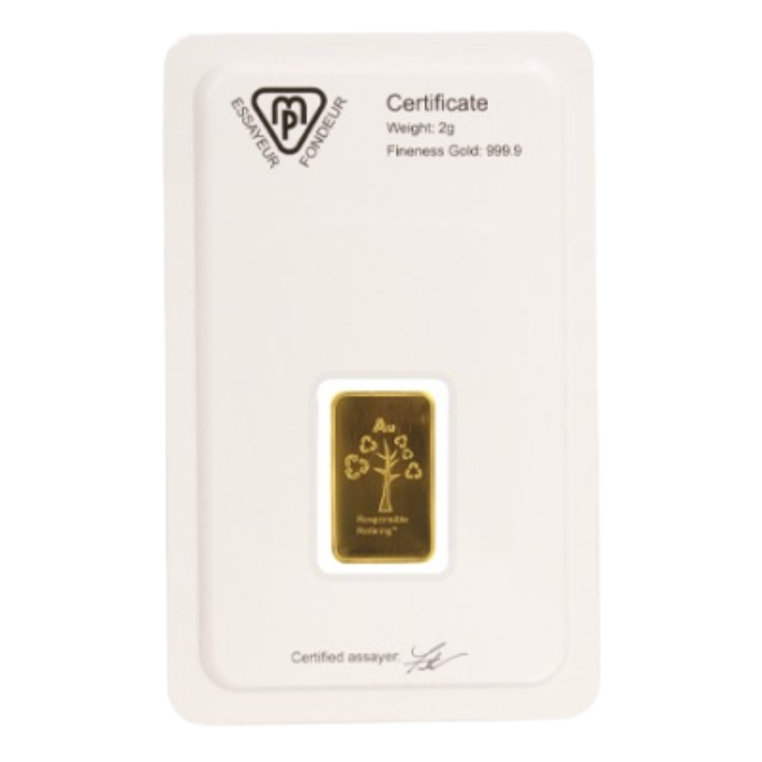 Whether you are looking to begin your journey into gold investment or expand an existing portfolio, this 2g Fine Gold Bar provides a secure and tradable asset. Its compact size and elegant design make it a timeless addition, blending both luxury and financial security for future prosperity.