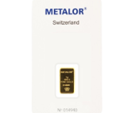 A 2 Gram Metalor Gold Mint Bar, an exceptional piece from the esteemed Metalor refinery in Switzerland. Renowned globally for their superior craftsmanship and adherence to purity, Metalor delivers this exquisite 2-gram gold bar with a fineness of 999.9%, guaranteeing a high level of gold purity (24 carats).