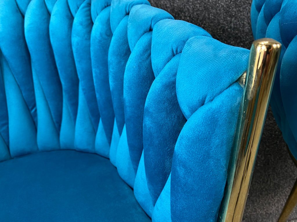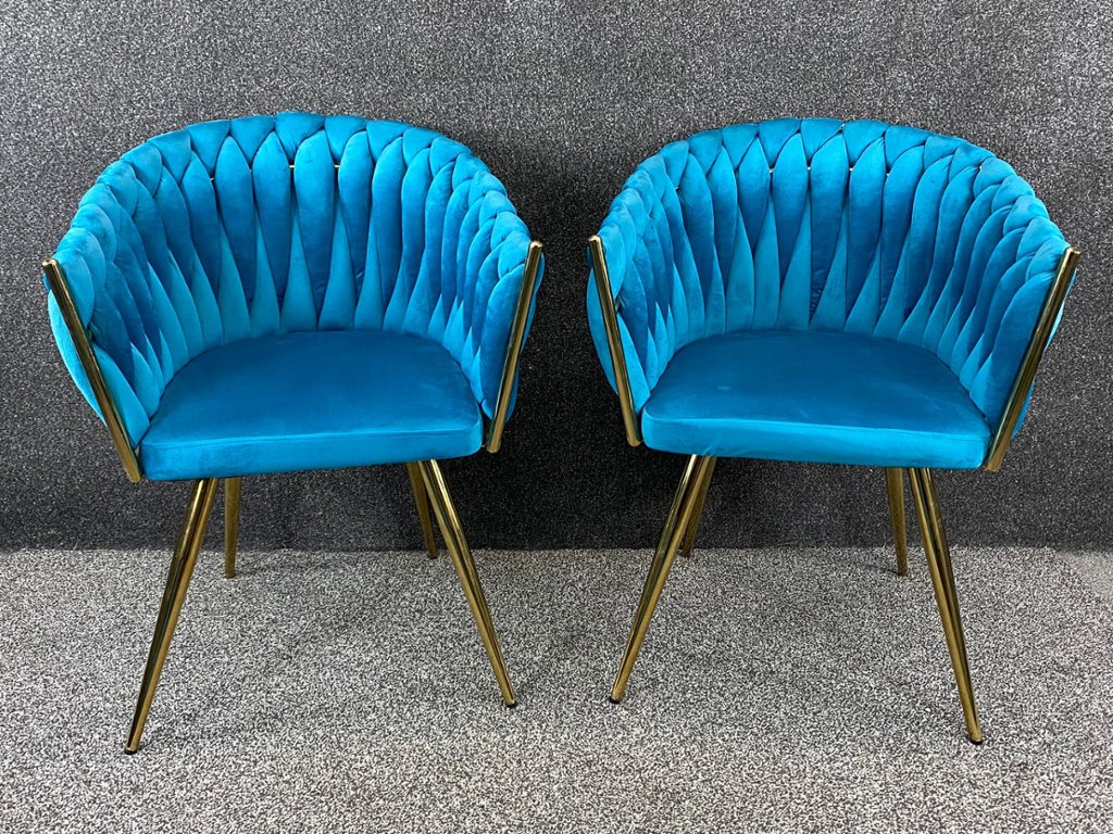 With approximate dimensions of 30 inches in height, 24 inches in width, and 20 inches in depth, these chairs are compact yet comfortable, ideal for smaller living spaces or as accent seating in larger rooms. Whether placed in a cosy reading nook, a stylish lounge area or as statement pieces in a bedroom, the Blue French Velvet Knot Design Nelly Chairs are sure to make a striking impression.