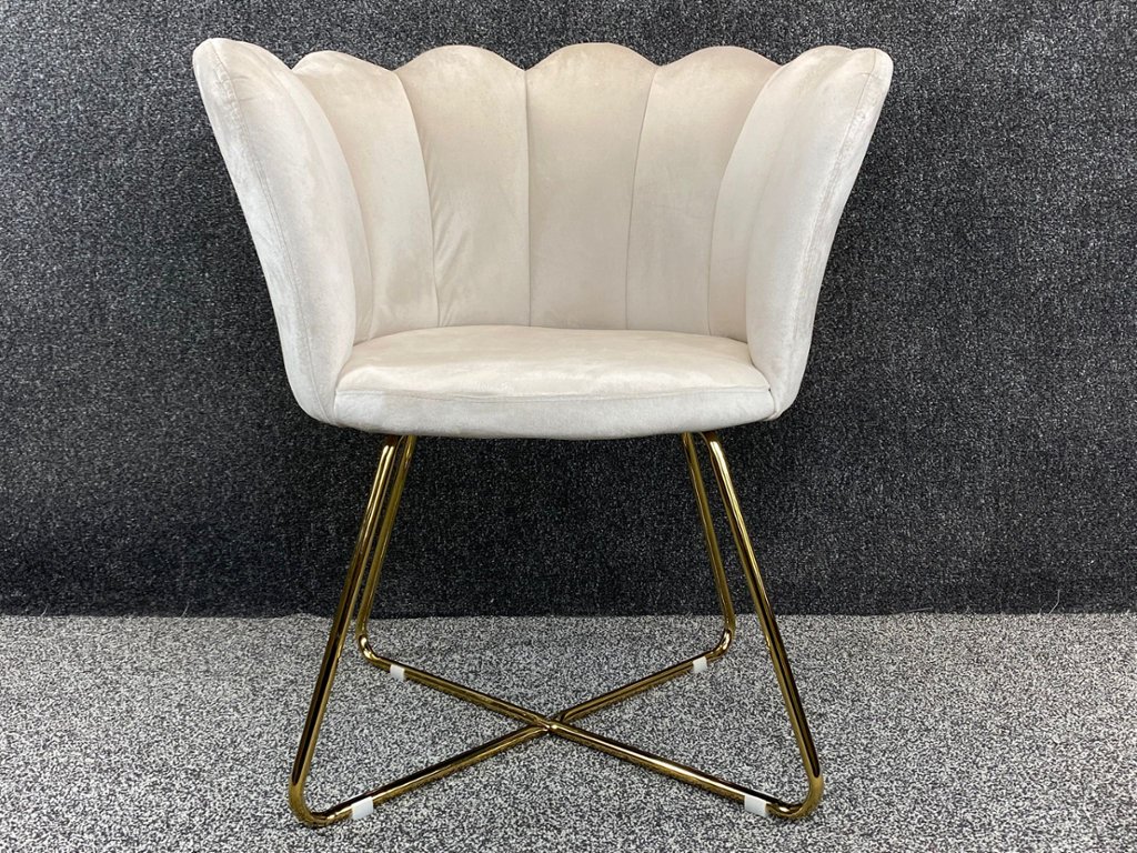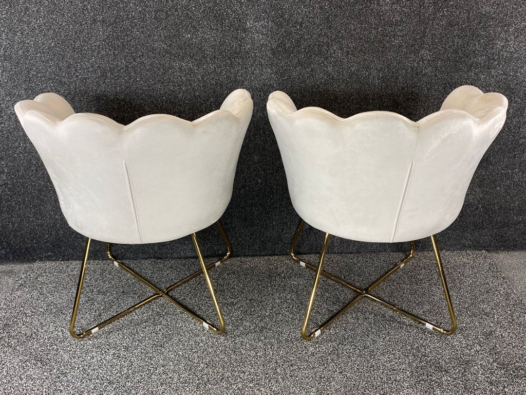 Each chair is supported by a sleek gold frame, which not only adds a modern and glamorous contrast to the cream velvet but also ensures stability and durability. The gold frame's clean lines and elegant finish enhance the overall aesthetic, making these chairs a stunning focal point in any room.