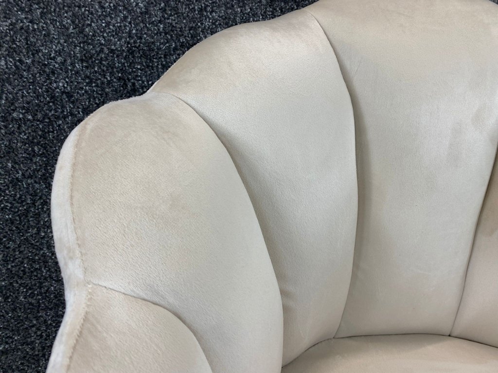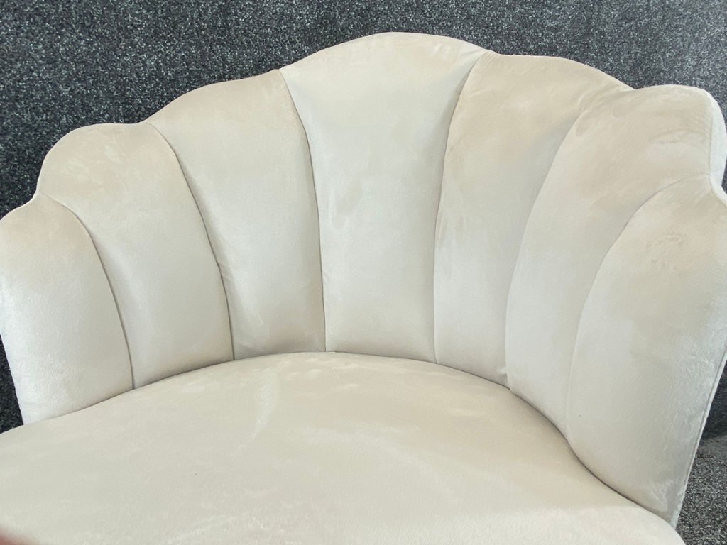 A pair of Cream French Velvet Shell Design Kitty Chairs, designed to bring a touch of sophistication and comfort to any setting. These elegant chairs feature sumptuous cream velvet upholstery that adds a refined and serene ambience to your decor. The distinctive shell-shaped backrest not only enhances their visual appeal but also provides excellent ergonomic support for a truly comfortable seating experience.