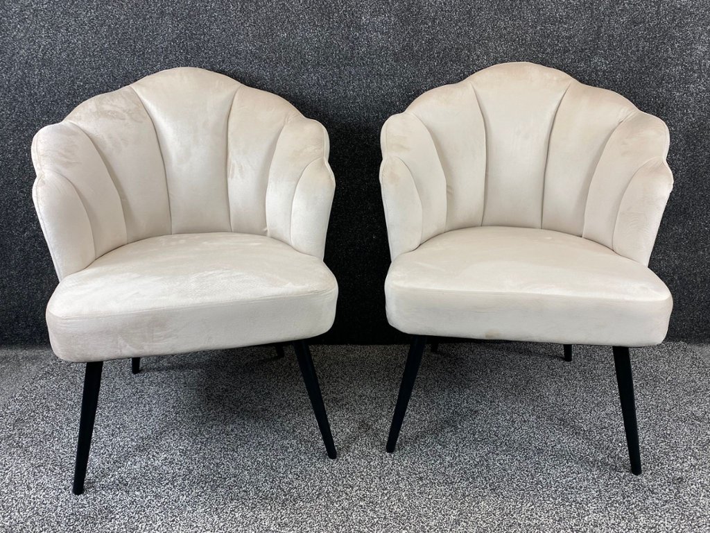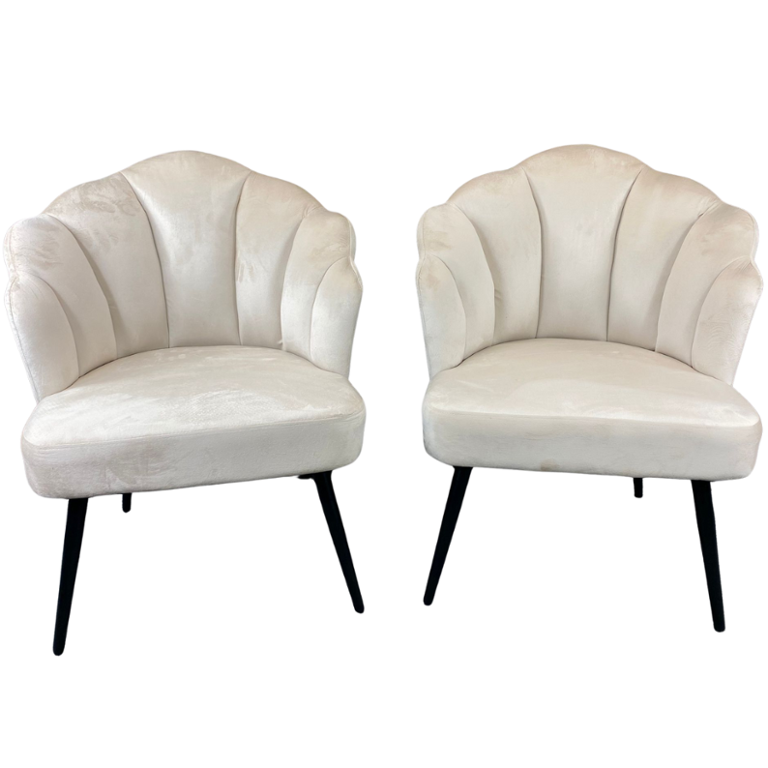With dimensions of approximately 32 inches in height, 29 inches in width, and 23 inches in depth, these chairs are perfectly sized to offer comfort without occupying too much space. Ideal for a living room, bedroom, or chic office, the Cream French Velvet Shell Design Kitty Chairs are a versatile and sophisticated addition to any interior.