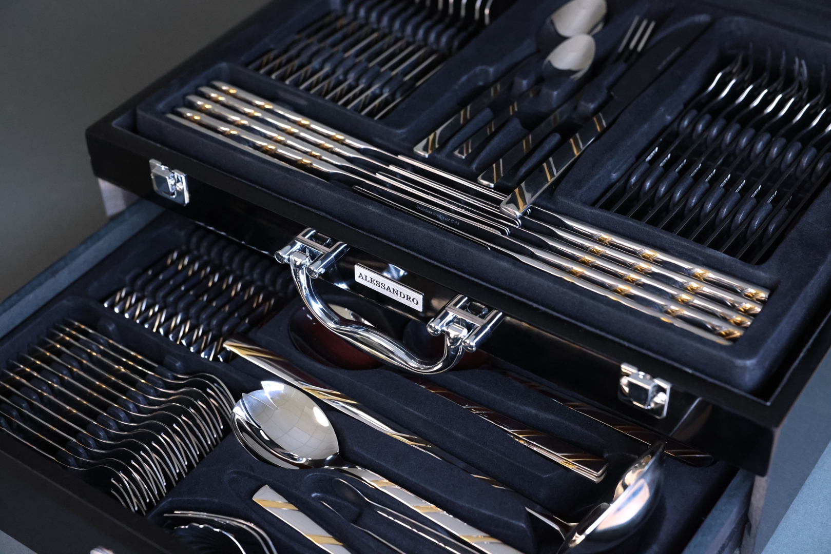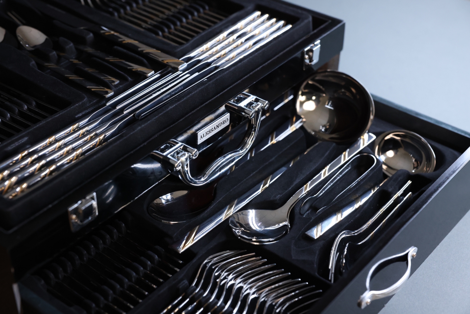 This Alessandro Messina cutlery suite is not just a dining essential but a statement of luxury and sophistication. It makes a perfect gift for weddings, anniversaries, or any special occasion. Indulge in the opulence and timeless elegance that this exquisite set brings to your table.