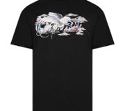 The standout feature is Amiri’s Pegasus script logo emblazoned across the chest. This striking design features the mythical Pegasus, symbolizing strength and freedom, making the tee a wearable piece of art. Set against the clean white backdrop, the logo pops, adding an air of sophistication and edgy charm.