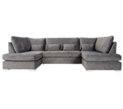 Belgravia Plush Grey U Shaped Fullback Sofa, a stylish and comfortable centerpiece for any modern living space. This luxurious sofa features a spacious U-shaped design, providing ample seating for family and guests. Upholstered in sumptuous grey plush fabric and supported by sleek silver metal legs, it exudes contemporary elegance.