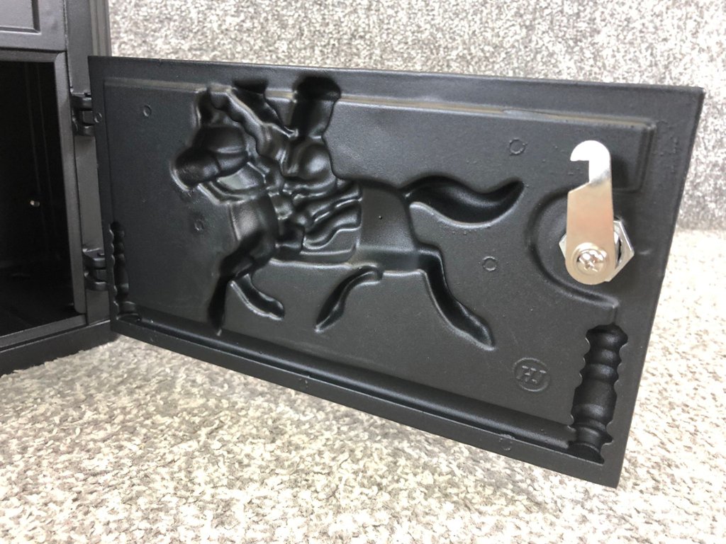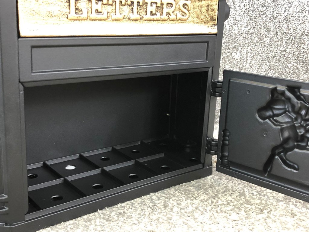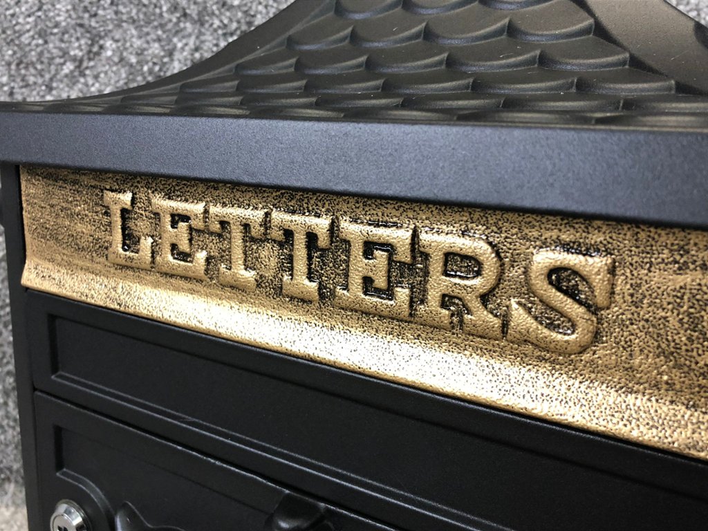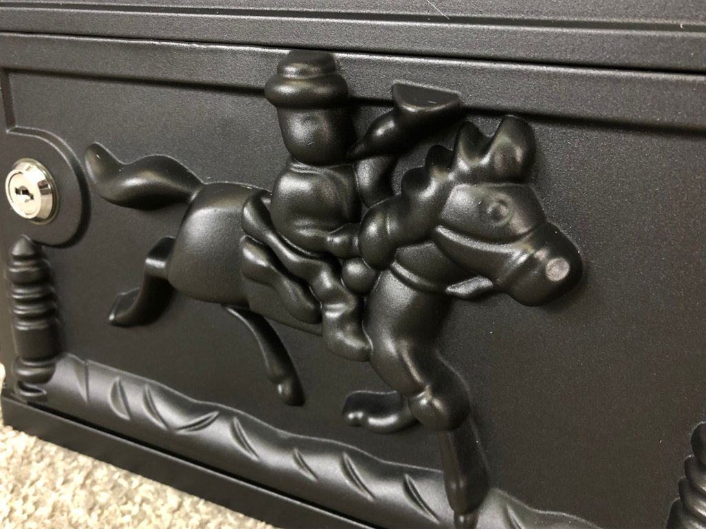 Whether used for receiving mail or simply as a decorative accent, our black and gold Jockey design post box is sure to make a statement and enhance the curb appeal of your home or business.