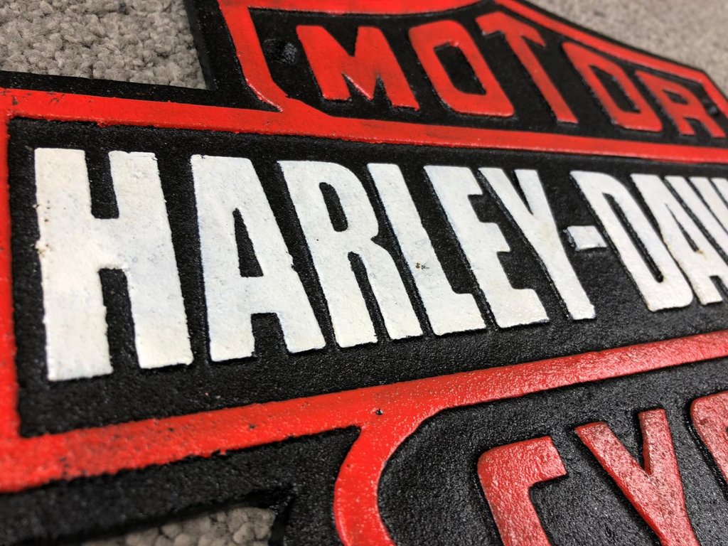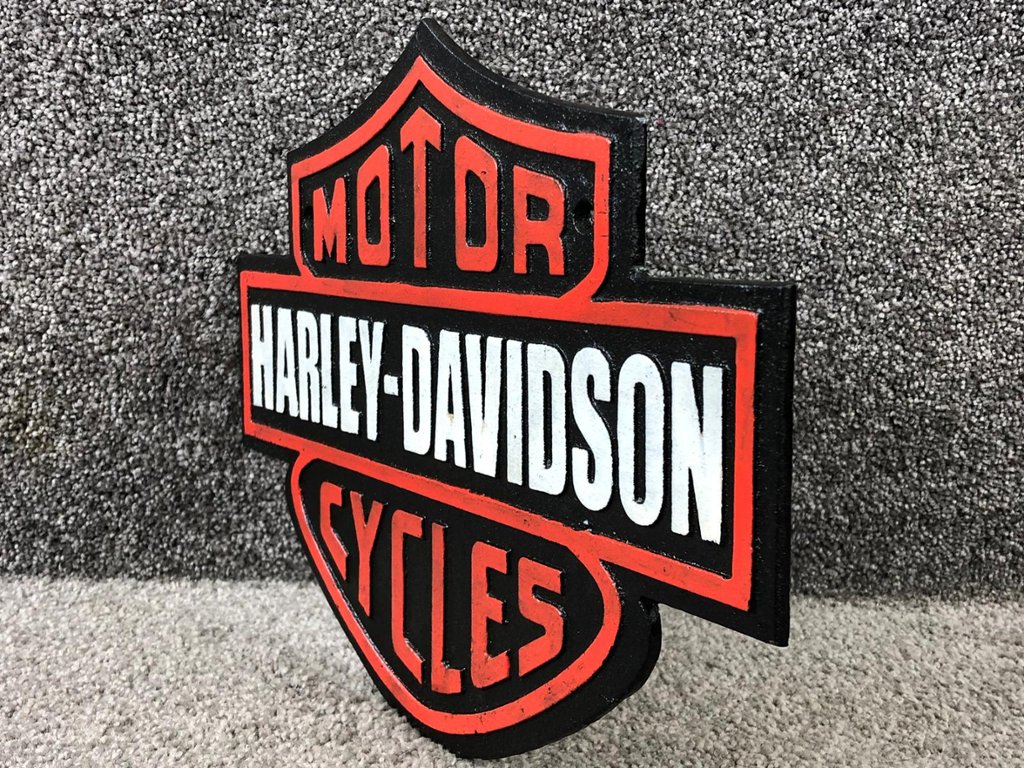 A black & white cast iron Harley-Davidson wall plaque is the ultimate collectable for motorcycle enthusiasts and fans of the iconic brand. Featuring the instantly recognisable Harley-Davidson Bar & Shield logo, this plaque combines bold black, striking red, and crisp white lettering to create a powerful display piece. The raised design gives it depth and presence, while the cast iron build ensures durability and a classic vintage look.