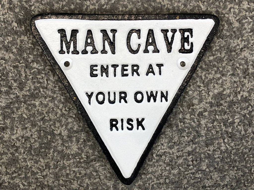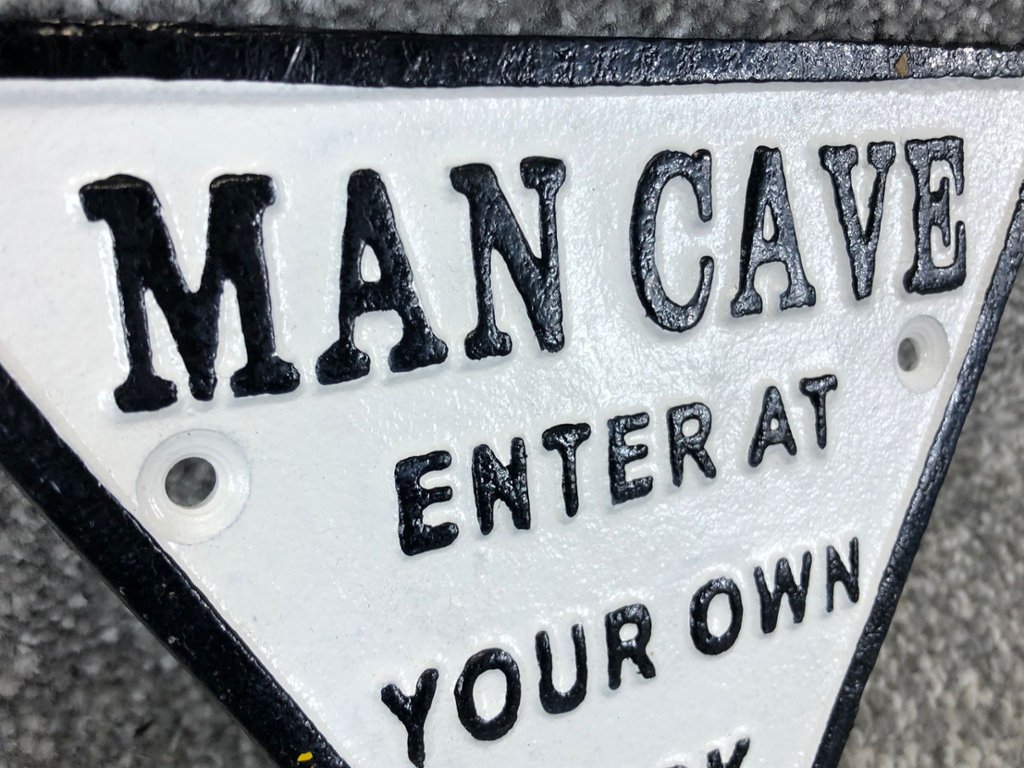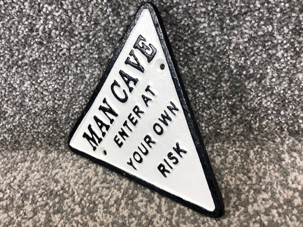 - > Black & White Triangular Man Cave Cast Iron Wall Sign