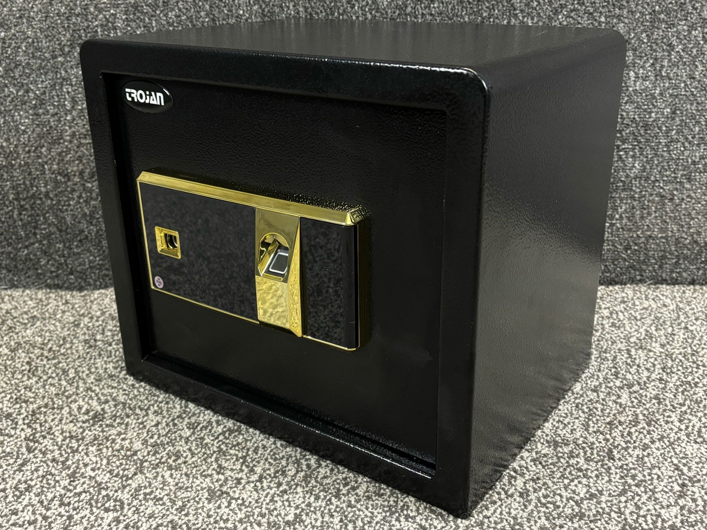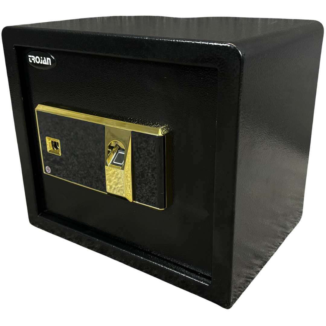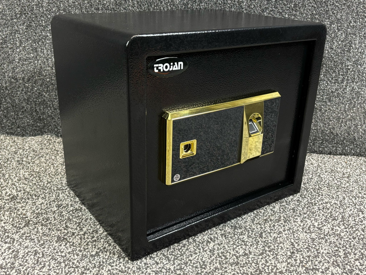 A Trojan fingerprint recognition safe, engineered for modern protection with sleek aesthetics, this biometric safe combines cutting-edge fingerprint access with an added layer of intelligence featuring an internal alarm that activates upon repeated incorrect fingerprint attempts, deterring unauthorised access with precision.