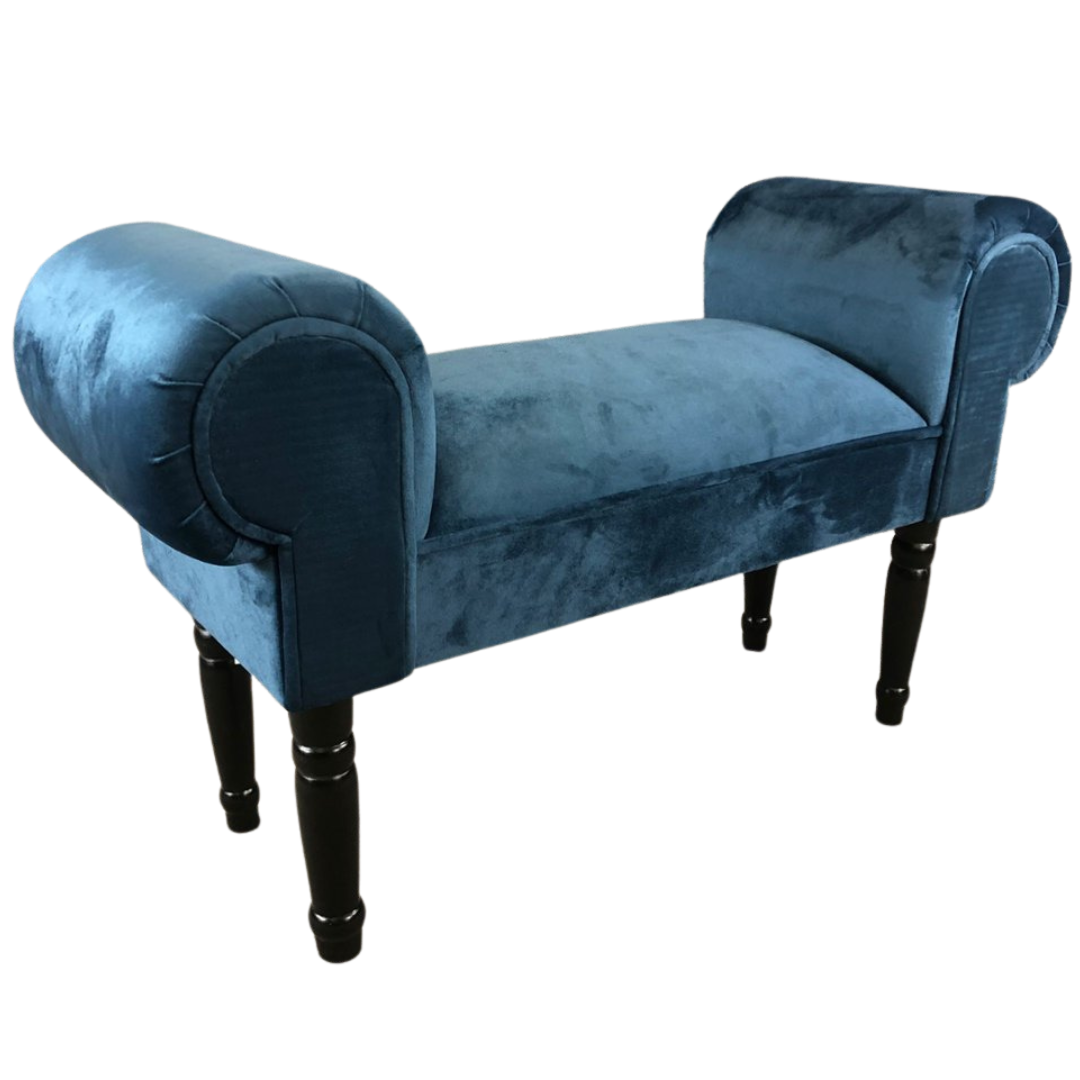A blue French velvet double ended daybed design foot stool brings a rich sense of elegance and character to any interior. Upholstered in a deep blue velvet with a soft, tactile finish, it features classic rolled ends that create a refined and balanced silhouette inspired by traditional French furniture design.