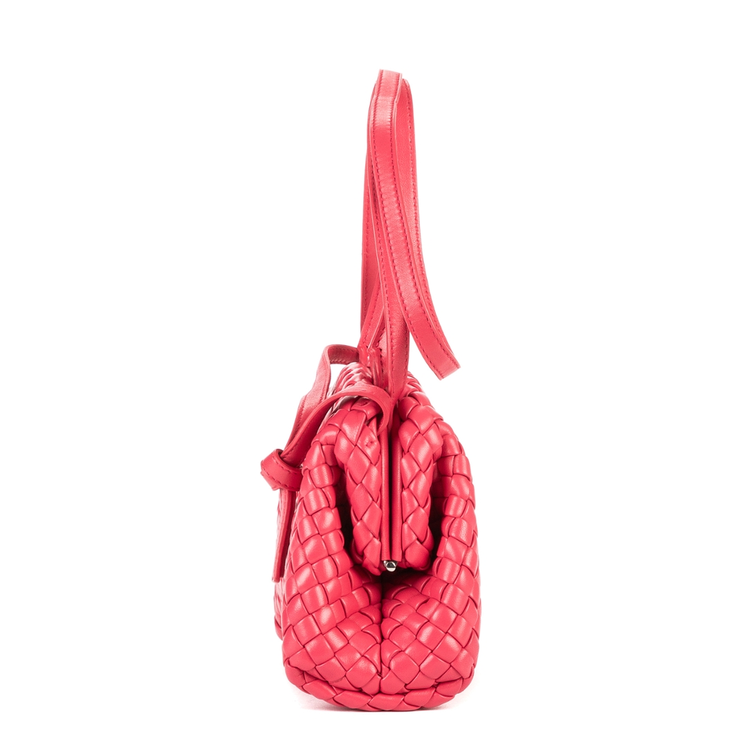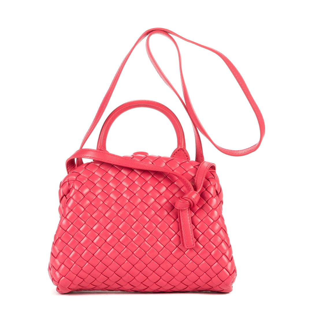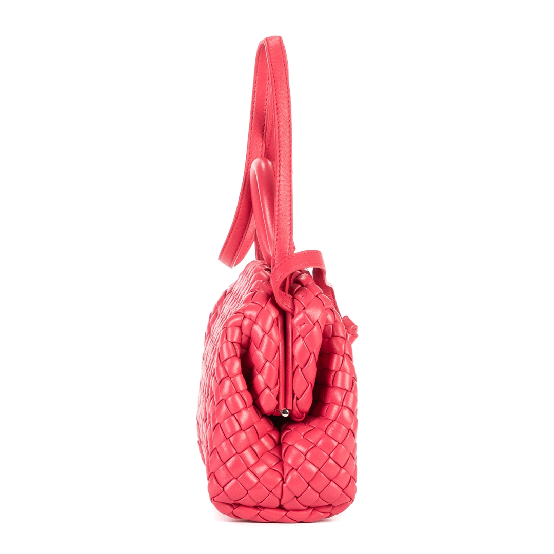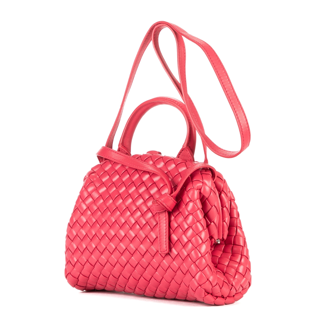 A vintage Bottega Veneta pink calf leather Crossbody bag with a certificate of authenticity, Approximately 16cm height, 21cm width.