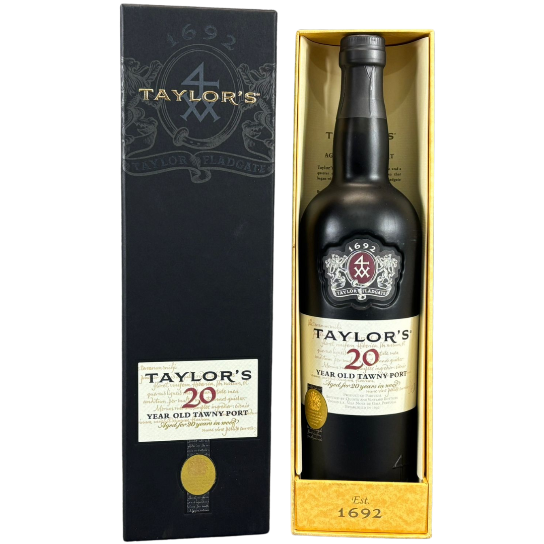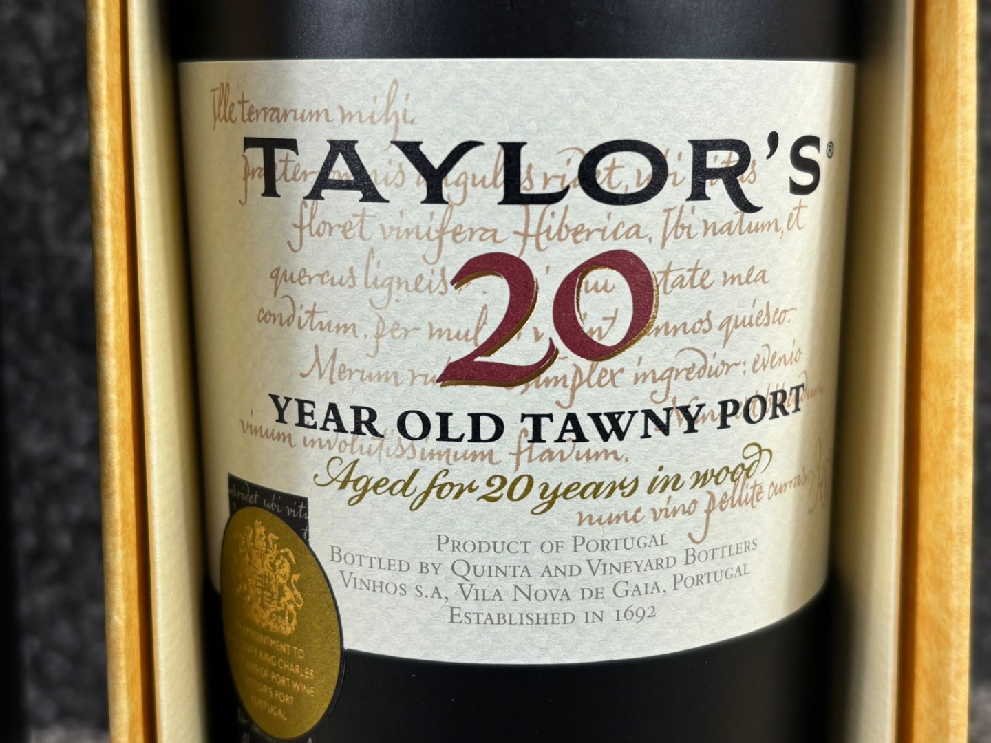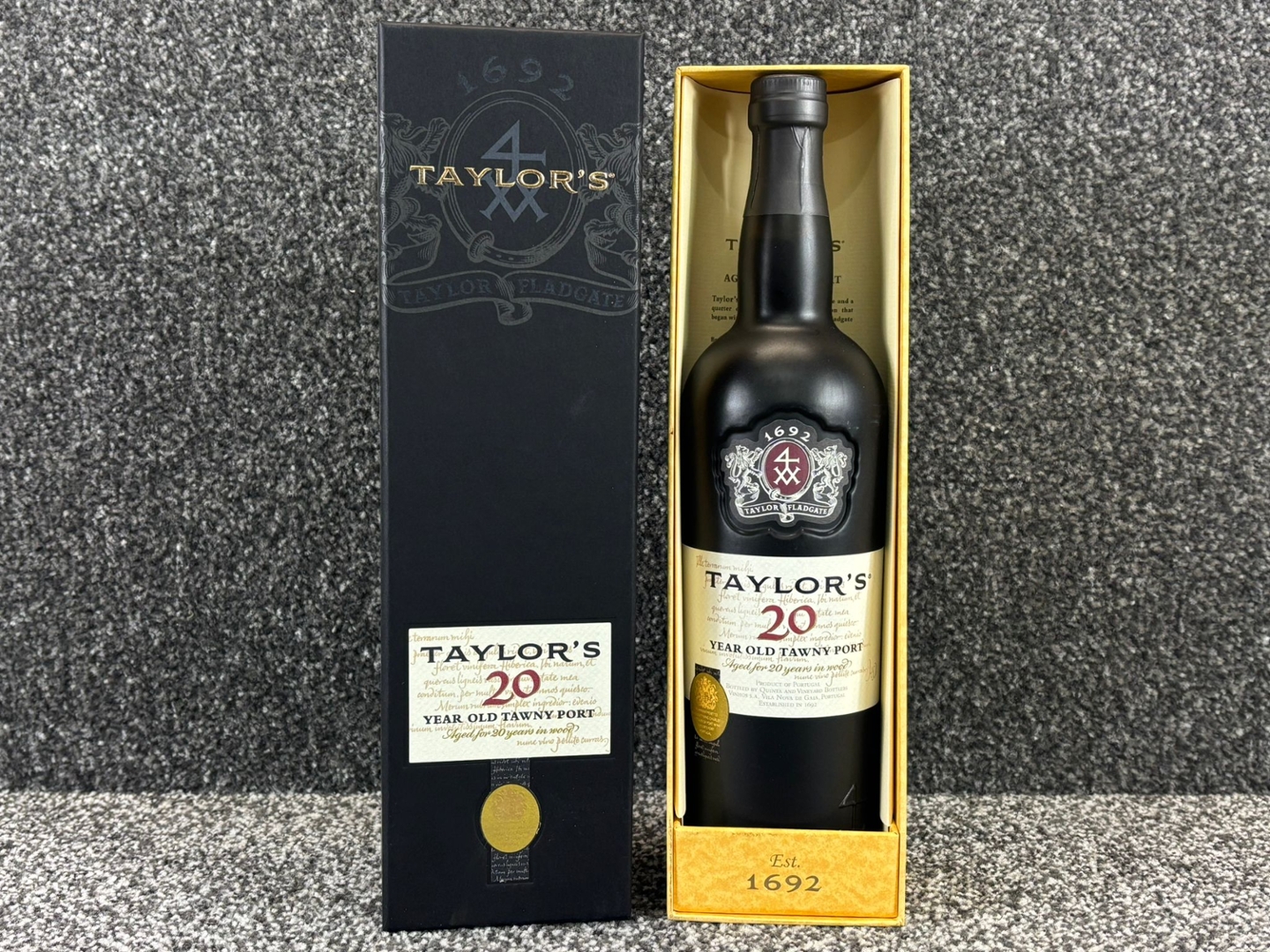 A bottle of Taylor's 20 Year Old Tawny Port in a presentation box. 75cl.