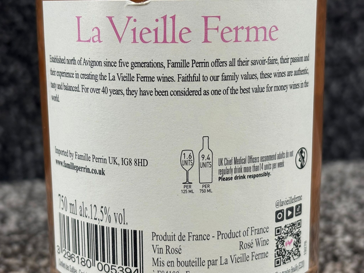 A bottle of 2025 Bottle of La Vieille Ferme Rose Wine. 750ml.