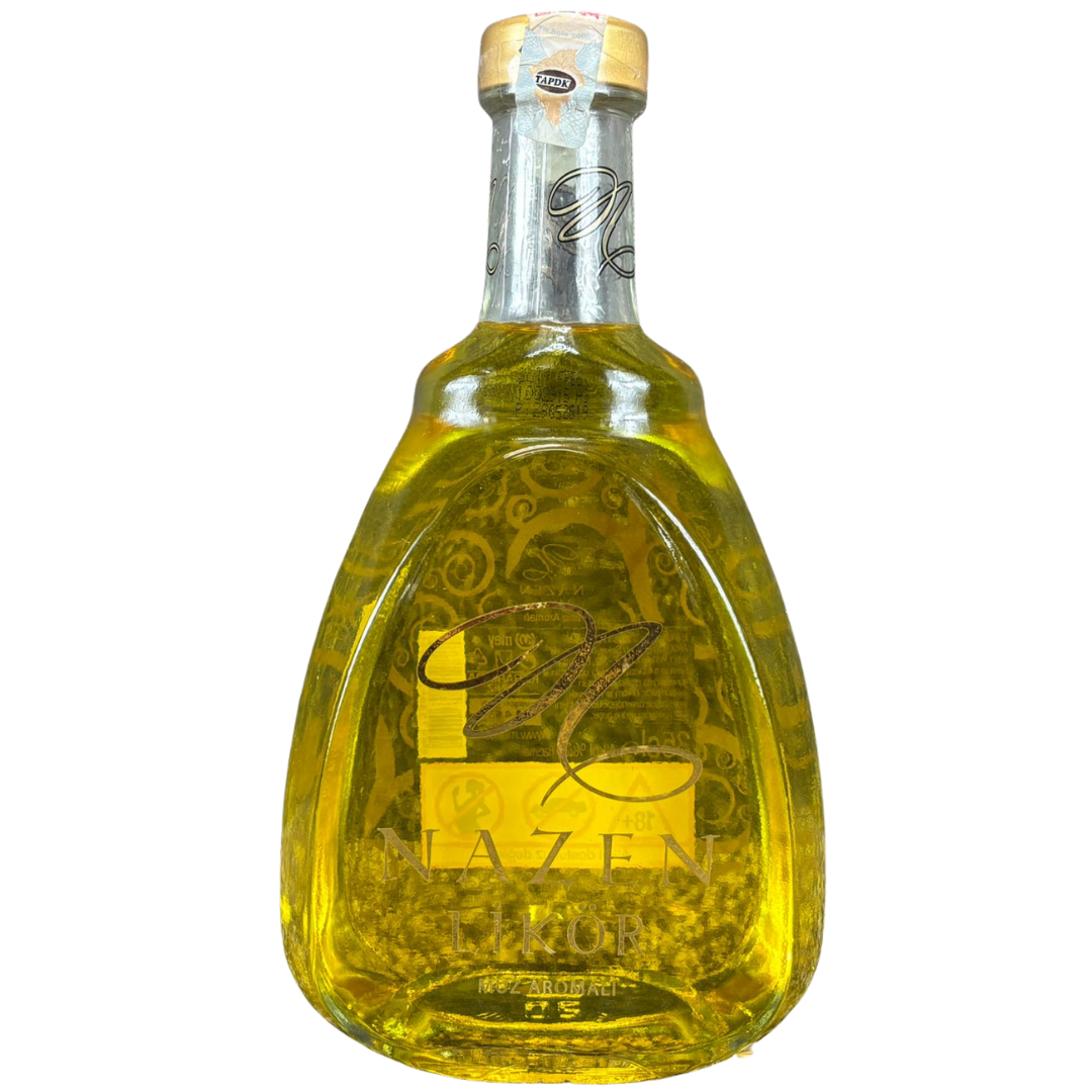 A 35cl bottle of Muz Aromalı Nazen Likör offers a vibrant and exotic liqueur presented in an elegant, uniquely shaped bottle. Its rich golden-yellow colour catches the light beautifully, while the minimalist gold-accented branding gives it a refined, premium look. Compact and stylish, it’s an attractive addition to any drinks cabinet or a thoughtful gift for those who enjoy trying distinctive liqueurs.