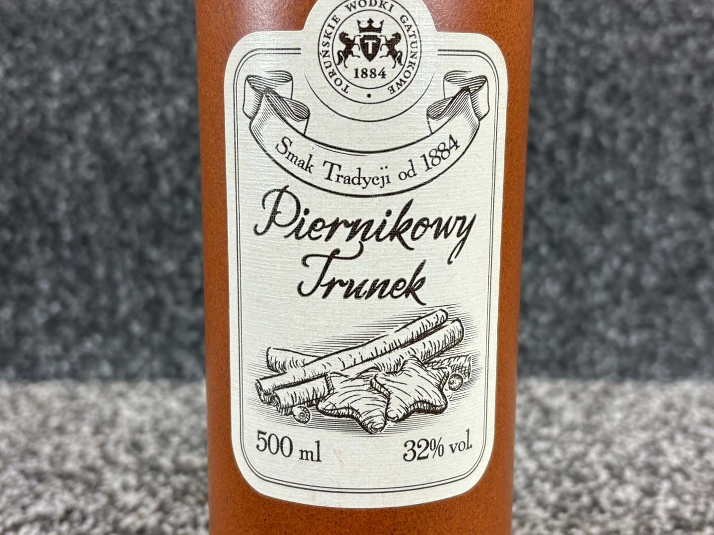 - > Bottle of Piernikowy Trunek Gingerbread Liqueur.