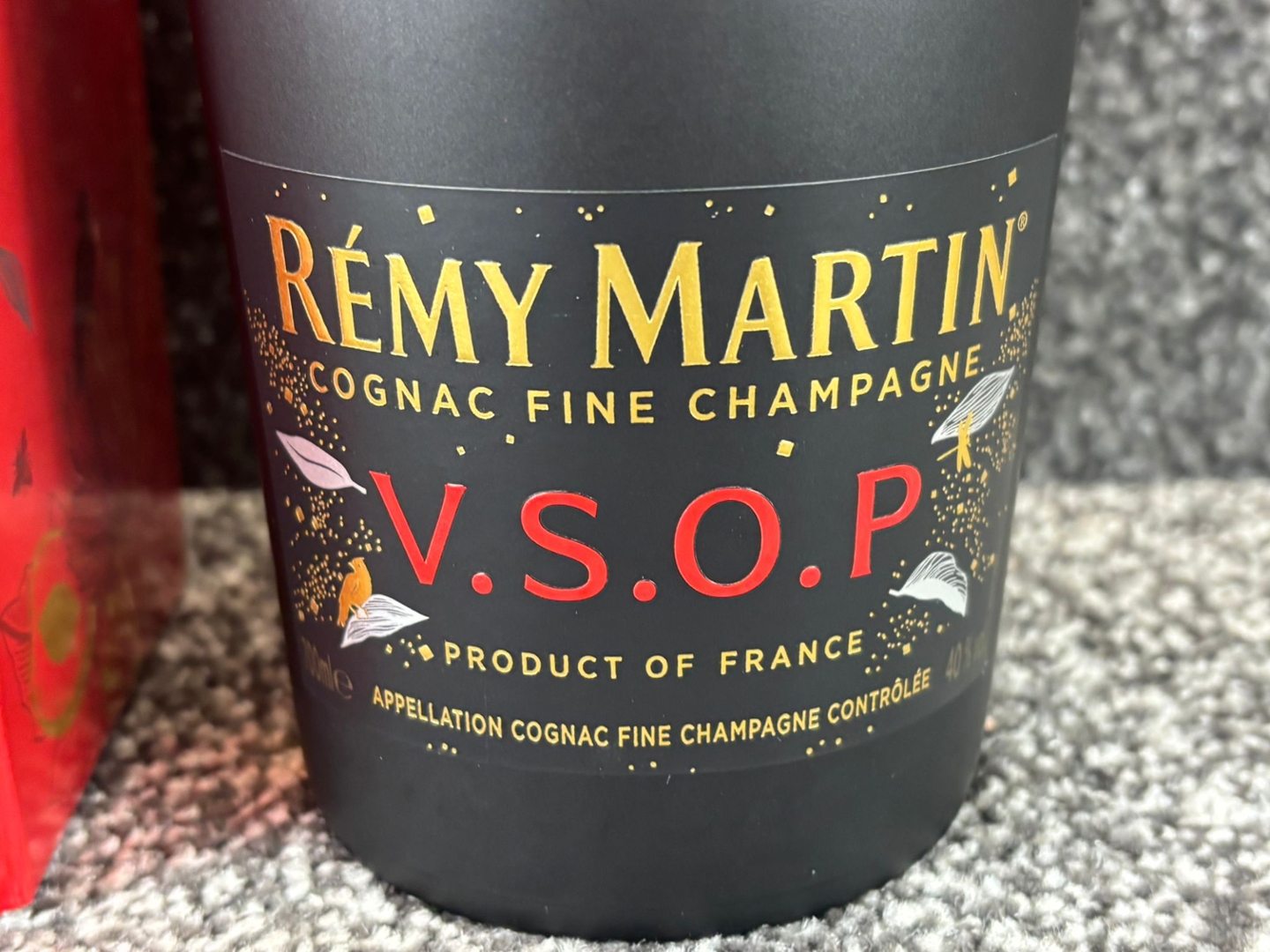 A bottle of Remy Martin VSOP Cognac Fine Champagne in a presentation box. 700ml.