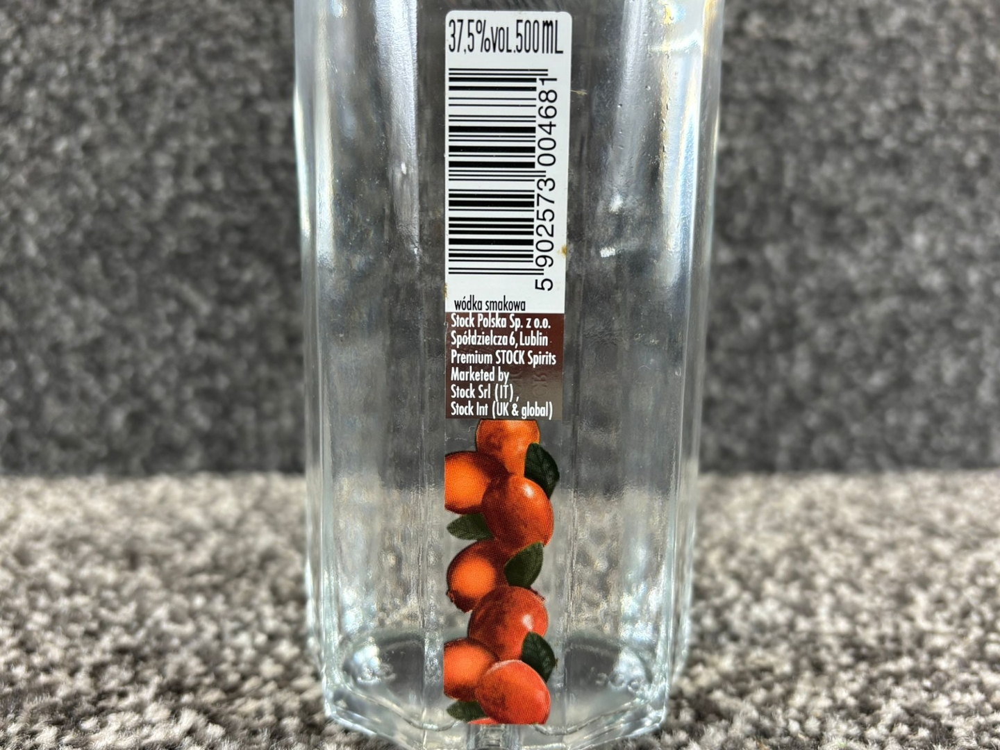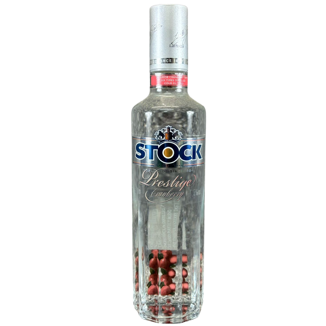 A 500ml bottle of Stock Prestige Cranberry Vodka offers a sleek,
