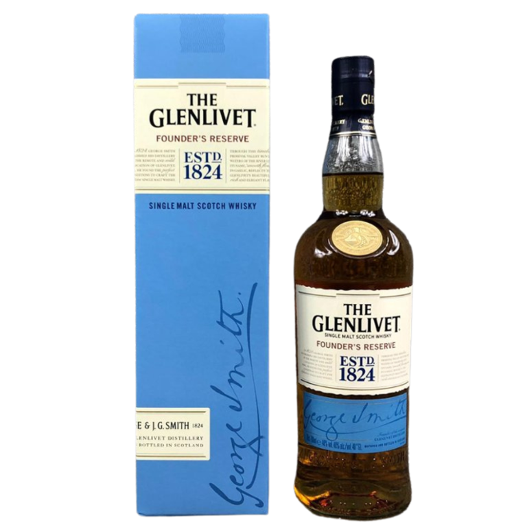 A bottle of The Glenlivet Founder's Reserve Single Malt Scotch Whisky—a true celebration of heritage and craftsmanship. Presented in a sleek 70cl bottle, this exquisite whisky pays tribute to the legacy of George Smith, the visionary founder of The Glenlivet Distillery, established in 1824. The Founder's Reserve embodies smoothness and balance, making it the perfect introduction to single malts.